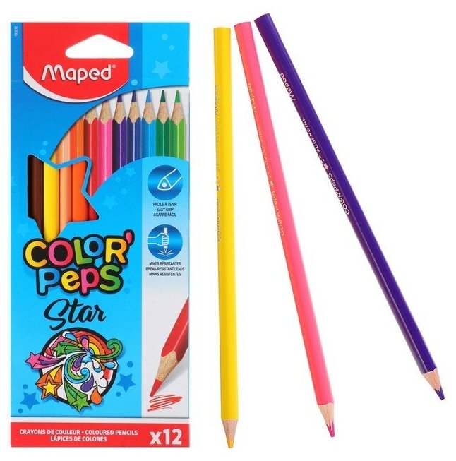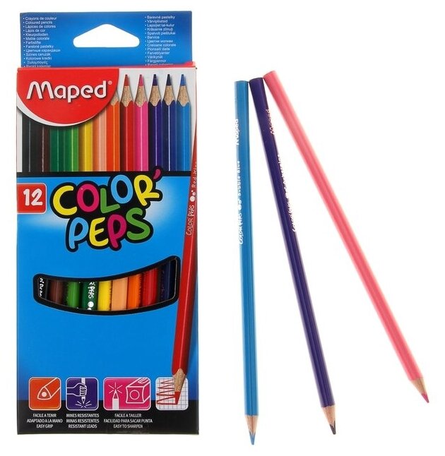 Набор цветных карандашей Maped Color Pep's идеально подойдет для рисования, позволяя раскрыть творческие способности вашего ребенка. Карандаши изготовлены из натуральной высококачественной древесины, что гарантирует легкое затачивание без заусенцев. Корпус имеет трехгранный профиль, благодаря чему удобно лежит в руке и не скатывается со стола. Ударопрочный грифель не раскалывается при случайном падении, что обеспечивает максимально комфортное использование.