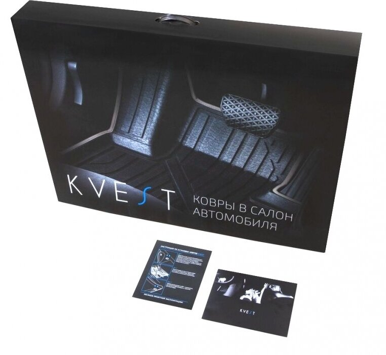 При производстве автомобильных ковриков KVEST использован инновационный материал Polystar, с ярко выраженной шероховатой поверхностью, которая обеспечивает противоскользящий эффект. Технологичный дизайн рисунка и нубуковая окантовочная лента придают завершенность и подчеркивают исключительность продукта. Каждый набор упакован в коробку с инструкцией по установке фиксаторов и брошюрой, содержащей описание всех достоинств ковров KVEST.