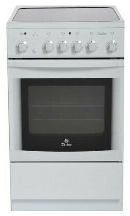 DELUXE - электрическая плита, выполненная в белом цвете, отлично подойдет для кухни небольшого размера. Оснащена 4 конфорками разного диаметра и мощности, в том числе 1 конфорка быстрого разогрева. Механическое управление (поворотные переключатели) обеспечивают удобство и простоту пользования устройством. Духовка имеет объем 54 литра. Двойное остекление дверцы духовки будет хорошей термоизоляцией. Также производитель предусмотрел в нижней части корпуса выдвижной ящик для посуды и кухонных принадлежностей.