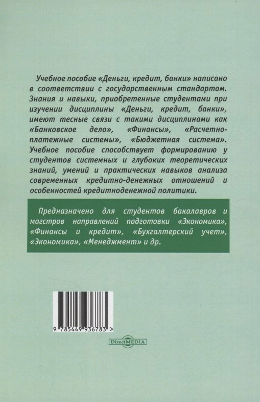 Сервис сравнения цен СкидкаГИД предлагает сравнить цены на товар «Книга: Деньги. Кредит. Банки. Учебное пособие (Шатаева Ольга Владимировна,Акимова Елена Николаевна,Демина Вера Викторовна); Директ-Медиа, 2023»