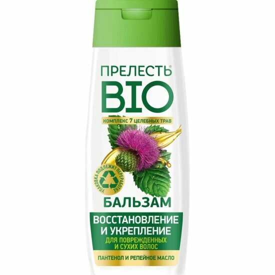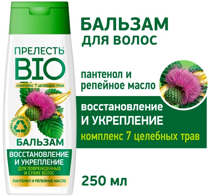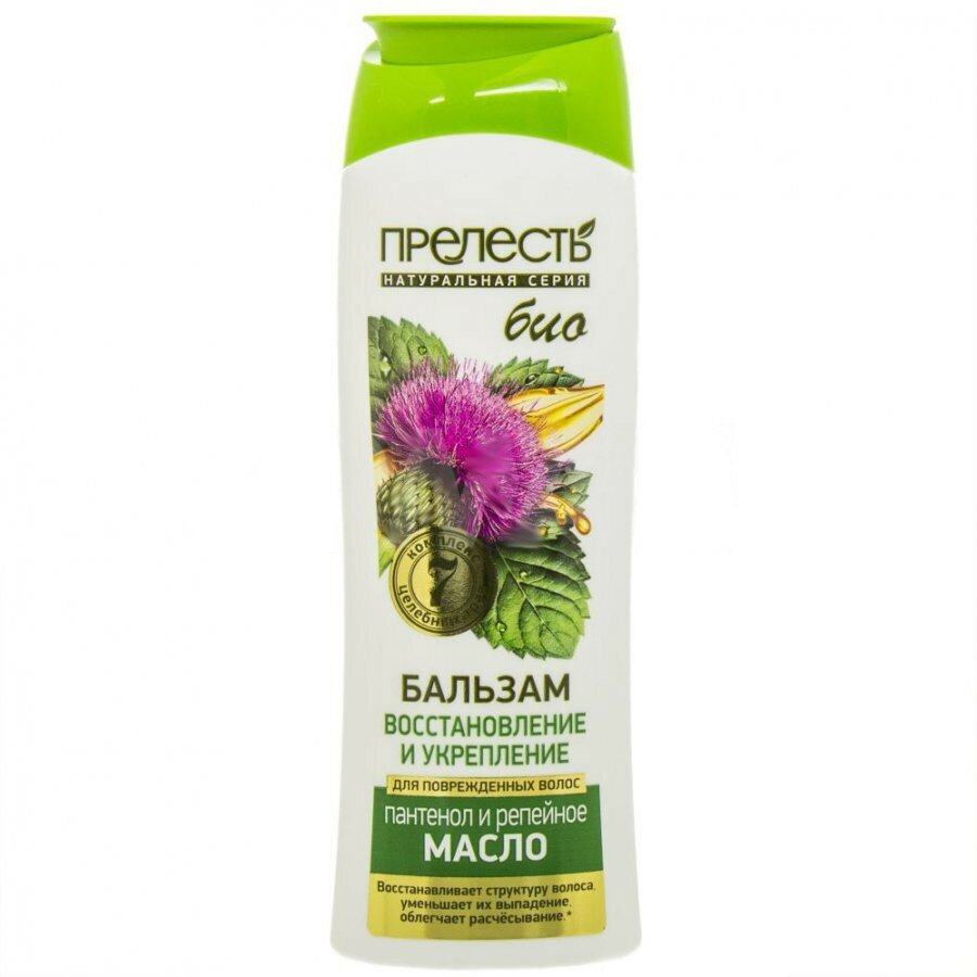Бальзам для волос Прелесть Bio Восстановление и укрепление для поврежденных и сухих волос с репейным маслом 250мл Аэрозоль Новомосковск