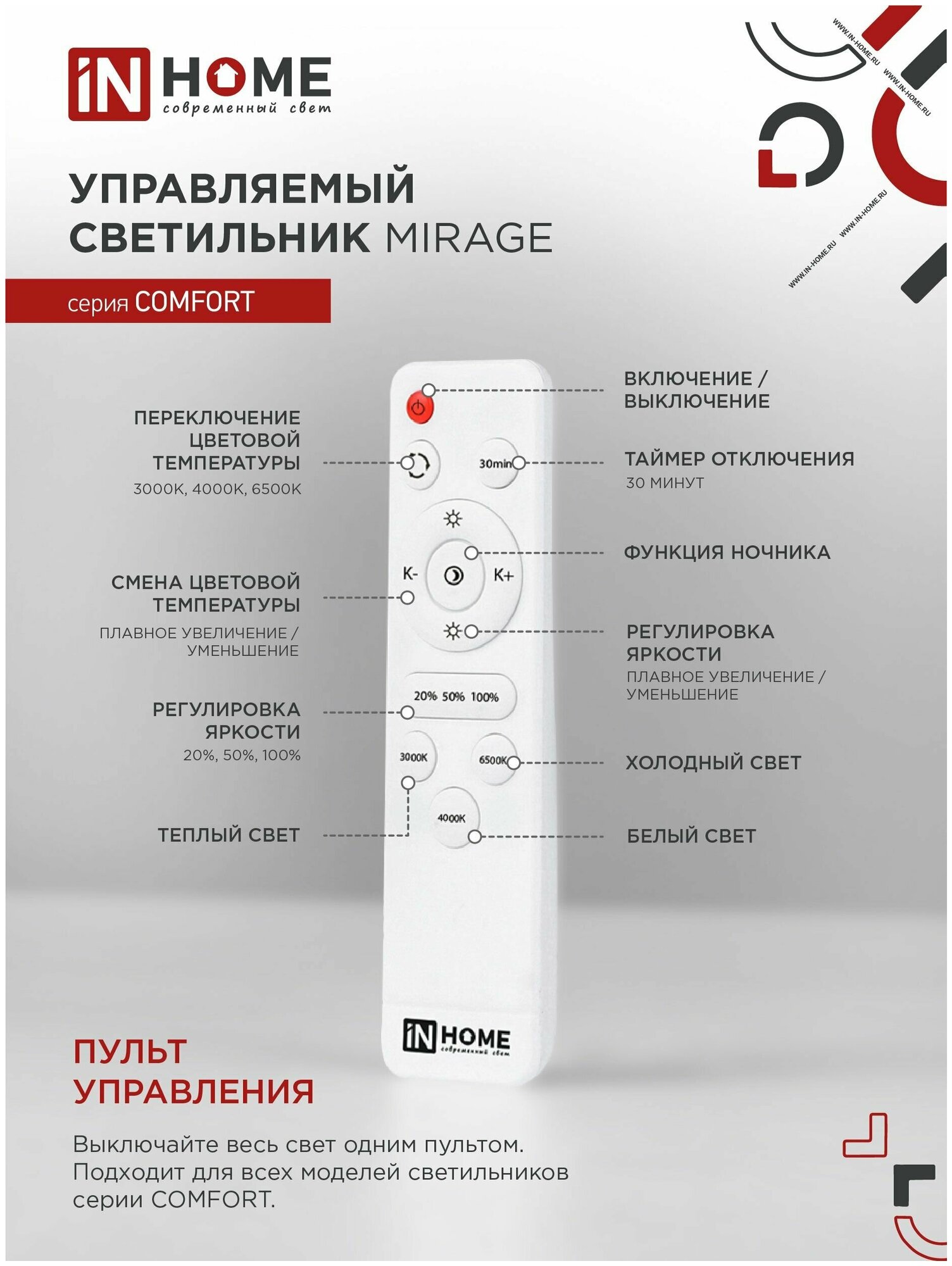 Светильник светодиодный IN HOME COMFORT MIRAGE 75Вт 230В 3000-6500К 6000лм 500х70мм с пультом ДУ 4690612035130