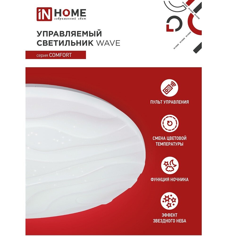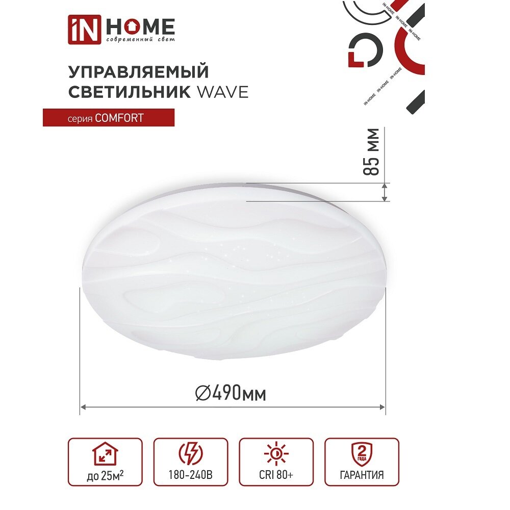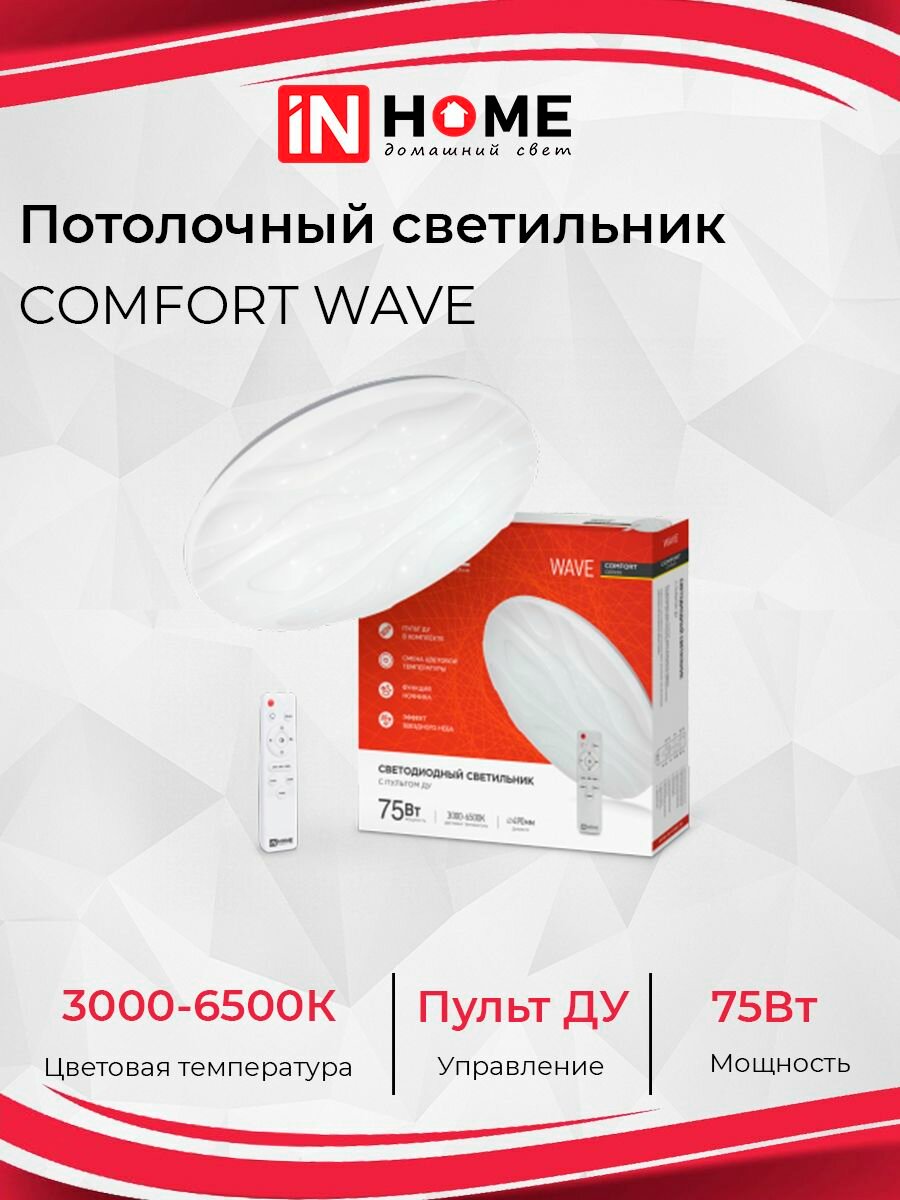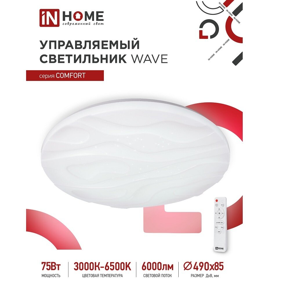 Светильник светодиодный IN HOME COMFORT WAVE 75Вт 230В 3000-6500К 6000лм 500х85мм с пультом ДУ 4690612034836