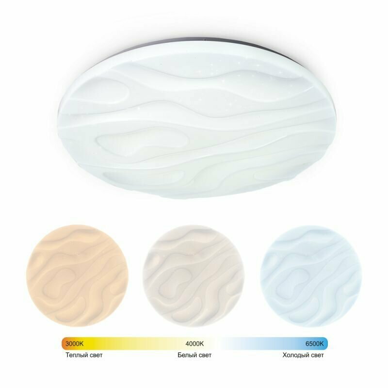Потолочный светодиодный светильник «WAVE» ТМ IN HOME составит достойную конкуренцию старым ламповым люстрам. Модель мощностью 75Вт излучает равномерный, комфортный для глаз свет, без пульсаций. Отличительной особенностью серии COMFORT является возможность настройки яркости света и цветовой температуры (от холодного белого 6500К до теплого света 3000К) с помощью пульта дистанционного управления.