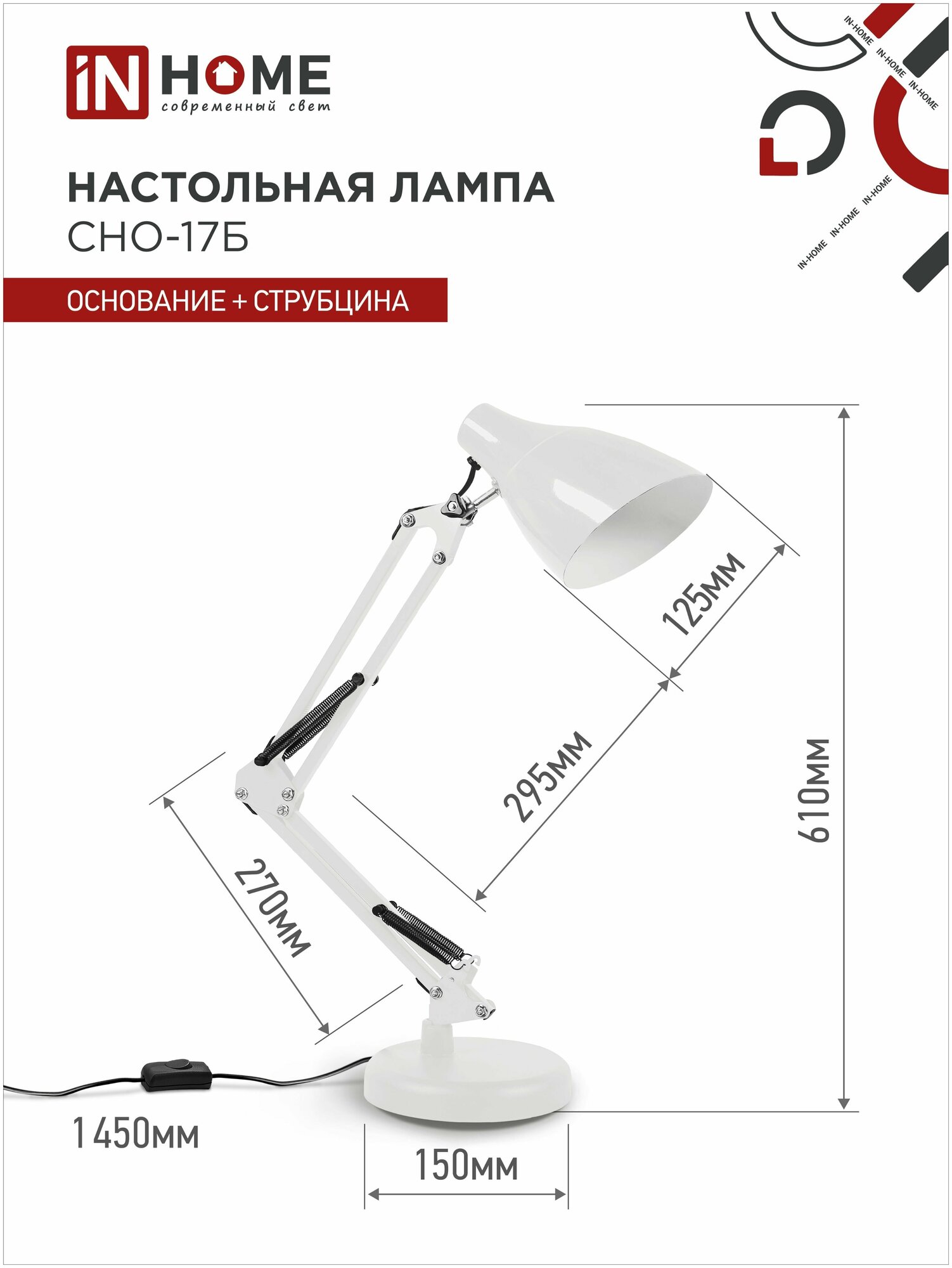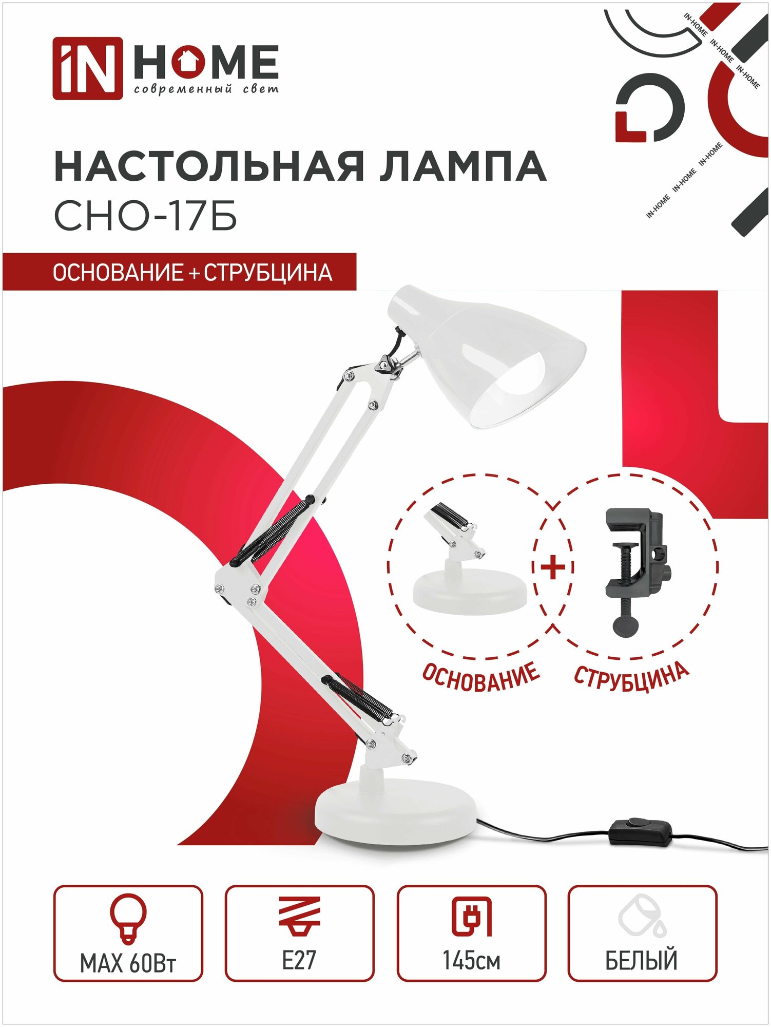 Светильник IN HOME под лампу СНО 17Б на основании 60Вт E27 230В белый (коробка) 4690612037226