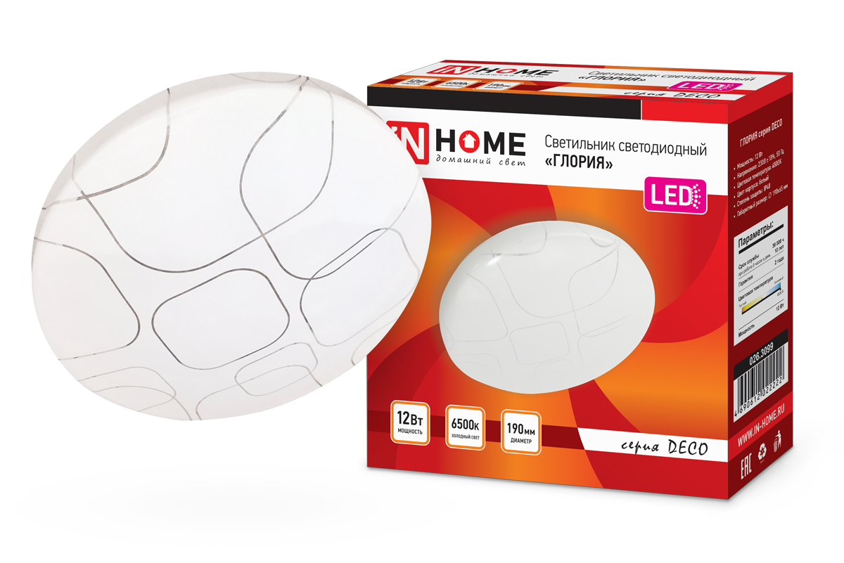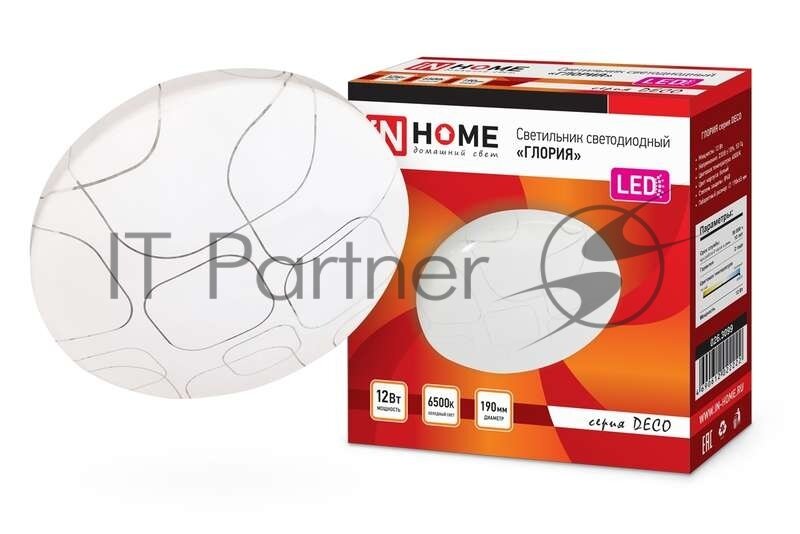 Светильник светодиодный IN HOME DECO 12Вт 230В 6500К 780лм 190мм ГЛОРИЯ 4690612022222