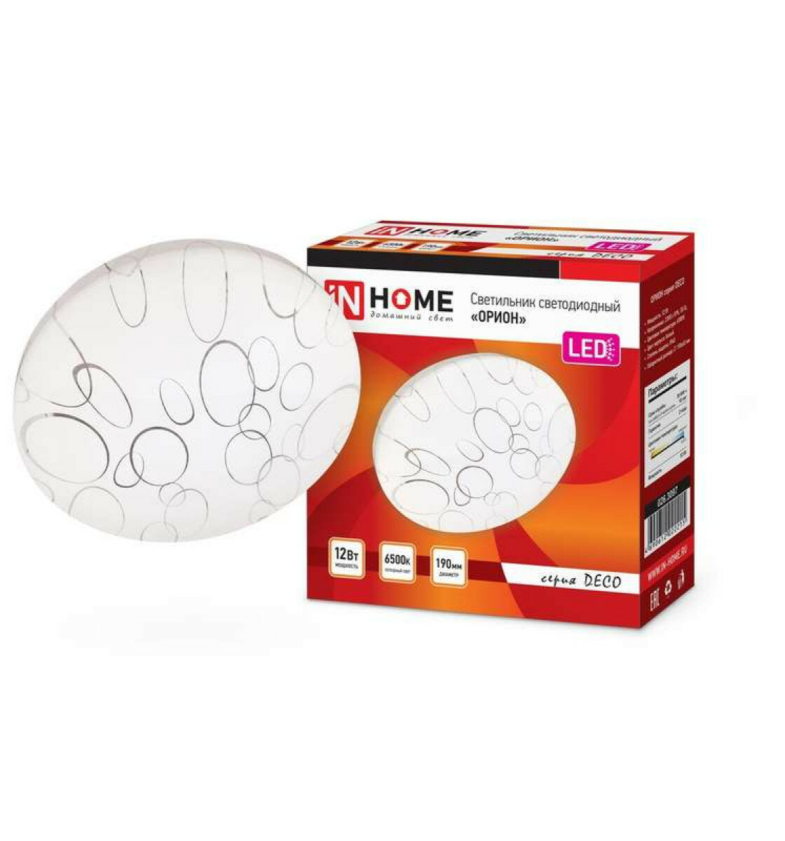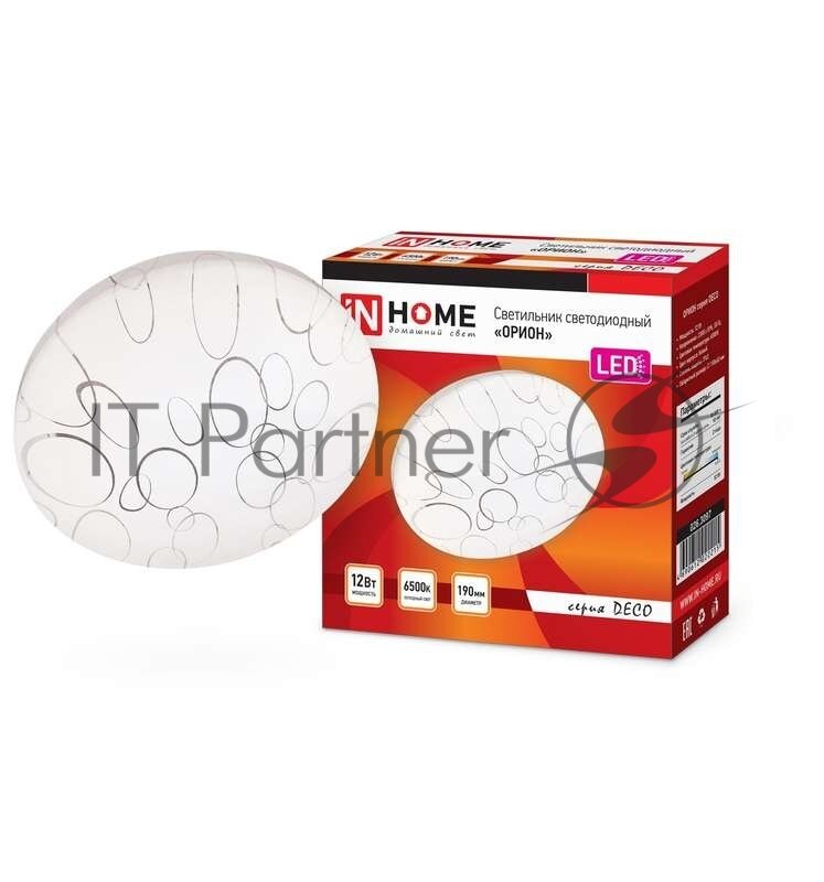 Светильник светодиодный IN HOME DECO 12Вт 230В 6500К 780лм 190мм ОРИОН 4690612022215