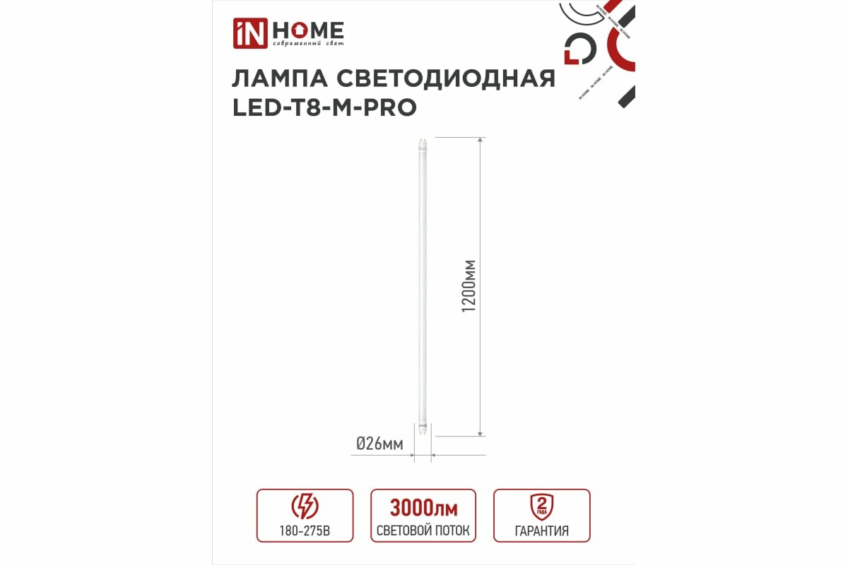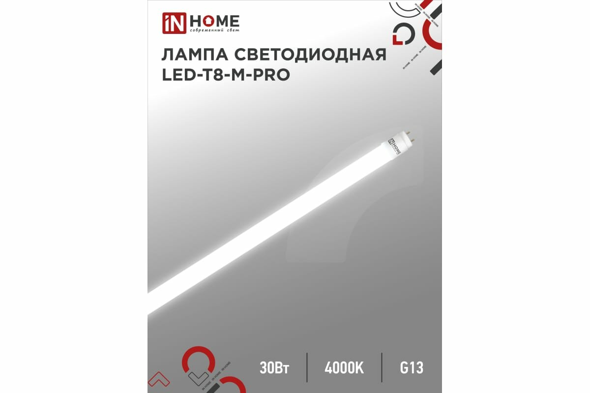 Лампа светодиодная IN HOME LED-T8-М-PRO 30Вт трубчатая с двухсторонним цоколем матовая 4000К нейтральный белый G13 3000лм 230В 1200мм н 4690612031019