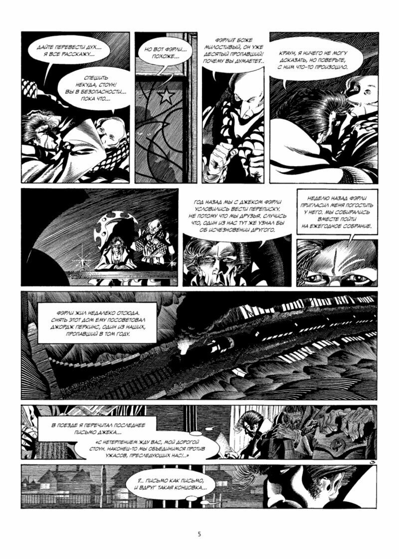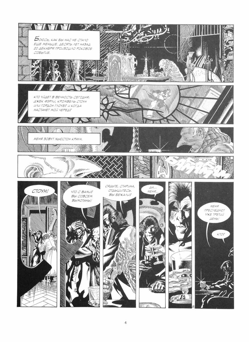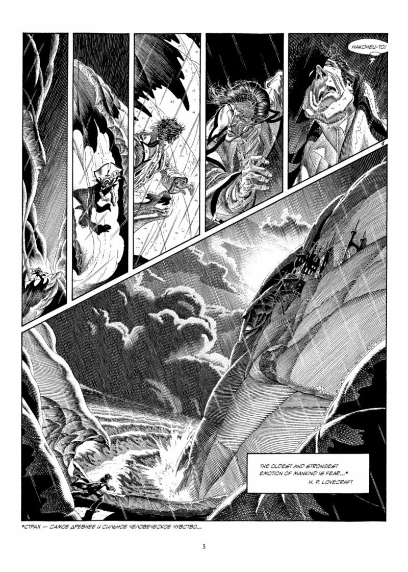 Для любителей стильной черно-белой графики (вроде "Франкенштейна" Б.Райтсона или "Cotpus Monstrum" Г.Джанни) – это абсолютный мастхэв. Причем все три части выполнены в несколько ином ключе (первая самая "простенькая") – авторская манера чуть плавает вместе со сменой центральных действующих лиц. По сюжету части продолжают друг друга. По жанру – это мистика, но не с разговорами и медленным нагнетанием, а бодрым сюжетом, беготней и потасовками. Альбом большого формата (как "Герметический Гараж" или "Трилогия Никополя"), но бумага, увы, похуже – печать выполнена на офсете. Резюме: "Хорошо, но – мало!"