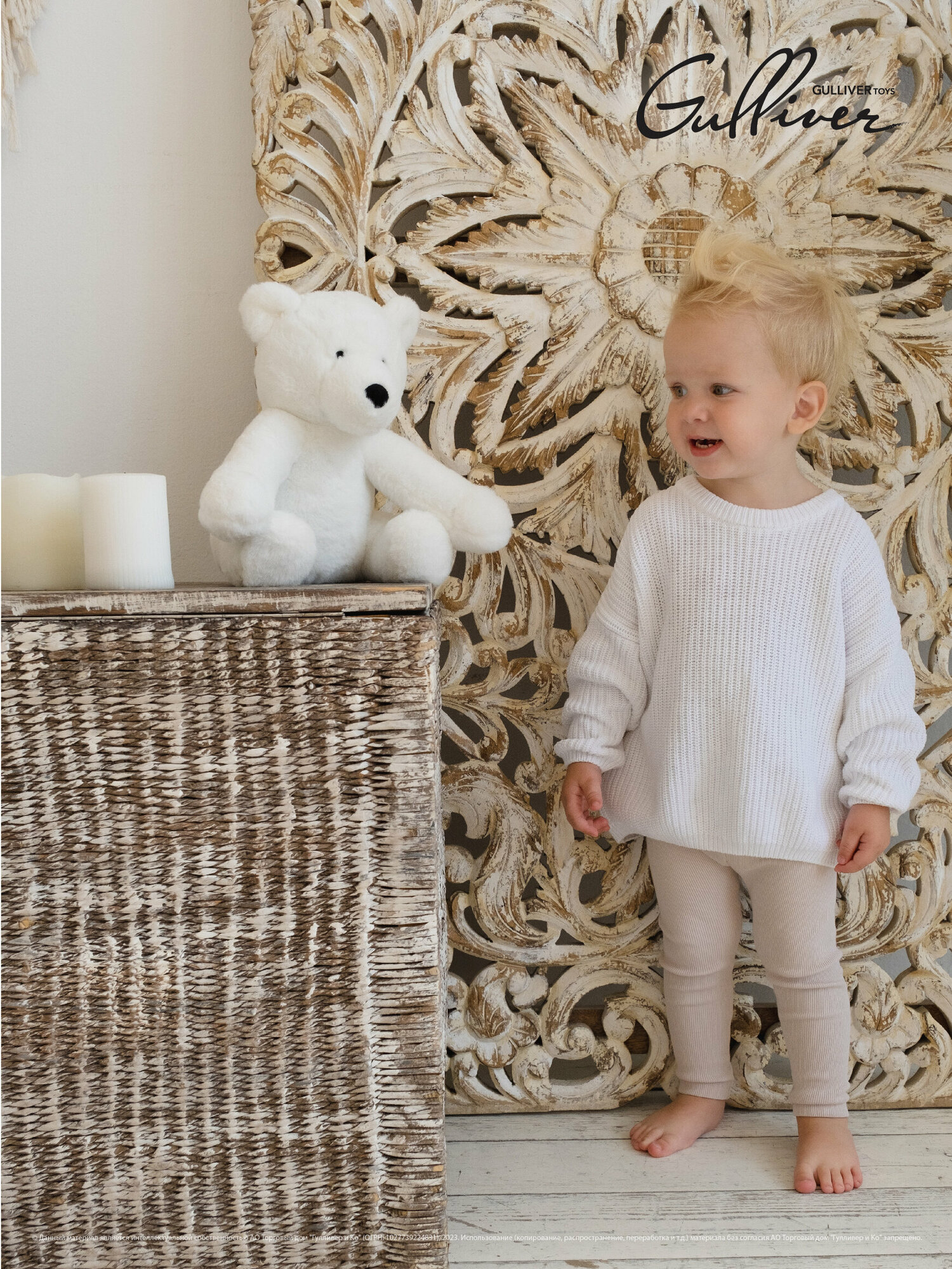 Что подарить ребенку или девушке? Конечно, мягкую игрушку! Мягкая игрушка мишка Нальдо из коллекции Mood мягких игрушек Gulliver понравится и детям и взрослым. Плюшевый мишка чистого белого цвета украсит любой интерьер и добавит уюта и света и в детской комнате и в гостиной, и даже на кухне. У мишки плюшевого милая мордочка, мягкая шерстка, черный плюшевый нос и вышитые глазки. Медведь невероятно легкий и приятный на ощупь, его можно взять в дорогу или на прогулку. Такой мишка тедди станет прекрасным подарком для девочки или мальчика, девушки, мамы, сестры, племянницы к любому празднику - День Рождения, Новый Год, Рождество, 8 марта, 14 февраля. Игрушку мягкую мишку можно посадить на кровать или диван, использовать его в качестве игрушки антистресс, игрушки обнимашки, игрушки подушки. Мягкая игрушка медведь упакована в плотную прозрачную брендированную сумочку на кнопках, поэтому дополнительная подарочная упаковка не требуется. Медведь мягкая игрушка высотой 26 см. Мягкий мишка стирается в щадящем режиме при температуре не более 30' и низких оборотах. Игрушка изготовлена из безопасных гипоаллергенных материалов. Товар сертифицирован. В коллекции Mood также представлены и другие милые мягкие игрушки - плюшевая собака, кролик игрушка, сова 3 в 1, игрушка динозавр и др.
