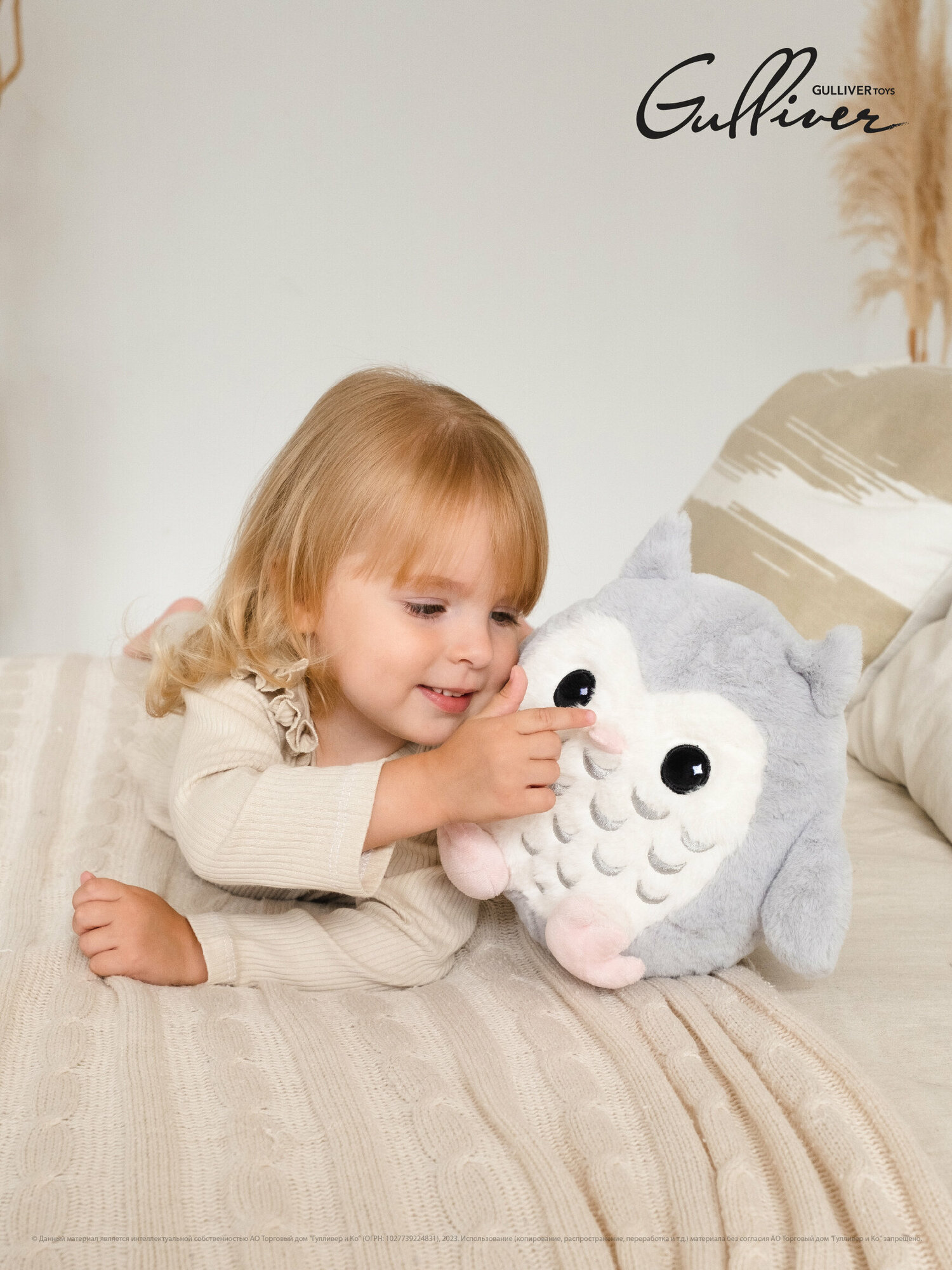 Всем любителям совушек рекомендуется! Плюшевая сова из коллекции Mood бренда мягкой игрушки Gulliver станет любимой игрушкой ребенка. Игрушка сова изготовлена из мягкого коротковорсного плюша, в гармоничной цветовой гамме серого, белого и розового оттенков. Сову мягкую игрушку отличает фактурная вышивка спереди и маленький вес. Маленькая мягкая игрушка сова небольшого размера и очень легкая, ее можно взять в дорогу и на прогулку. Игрушка сова подойдет в качестве интерьерной игрушки и отлично устрится на полке или кровати в детской комнате или гостиной. Сова 3 в 1 благодаря своему цвету и приятным на ощупь материалам - это не только интерьерная игрушка, но и игрушка обнимашка и антистресс игрушка. Такие плюшевые игрушки приятно дарить в подарок на День Рождения, юбилей, Новый год или Рождество, 14 февраля или 8 марта. Сова игрушка упакована в плотную прозрачную брендированную сумочку на кнопках, которая одновременно служит и подарочной упаковкой. Высота игрушки сова - 23 см. Игрушку плюшевую можно стирать в щадящем режиме при температуре не более 30' и низких оборотах. Игрушка изготовлена из безопасных гипоаллергенных материалов. Товар сертифицирован. В коллекции Mood также представлены и другие интересные игрушки - плюшевый мишка, плюшевая собака, кролик игрушка и др.