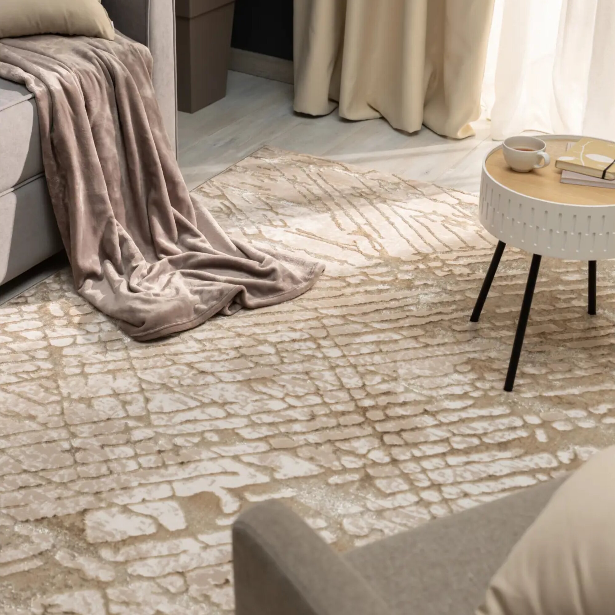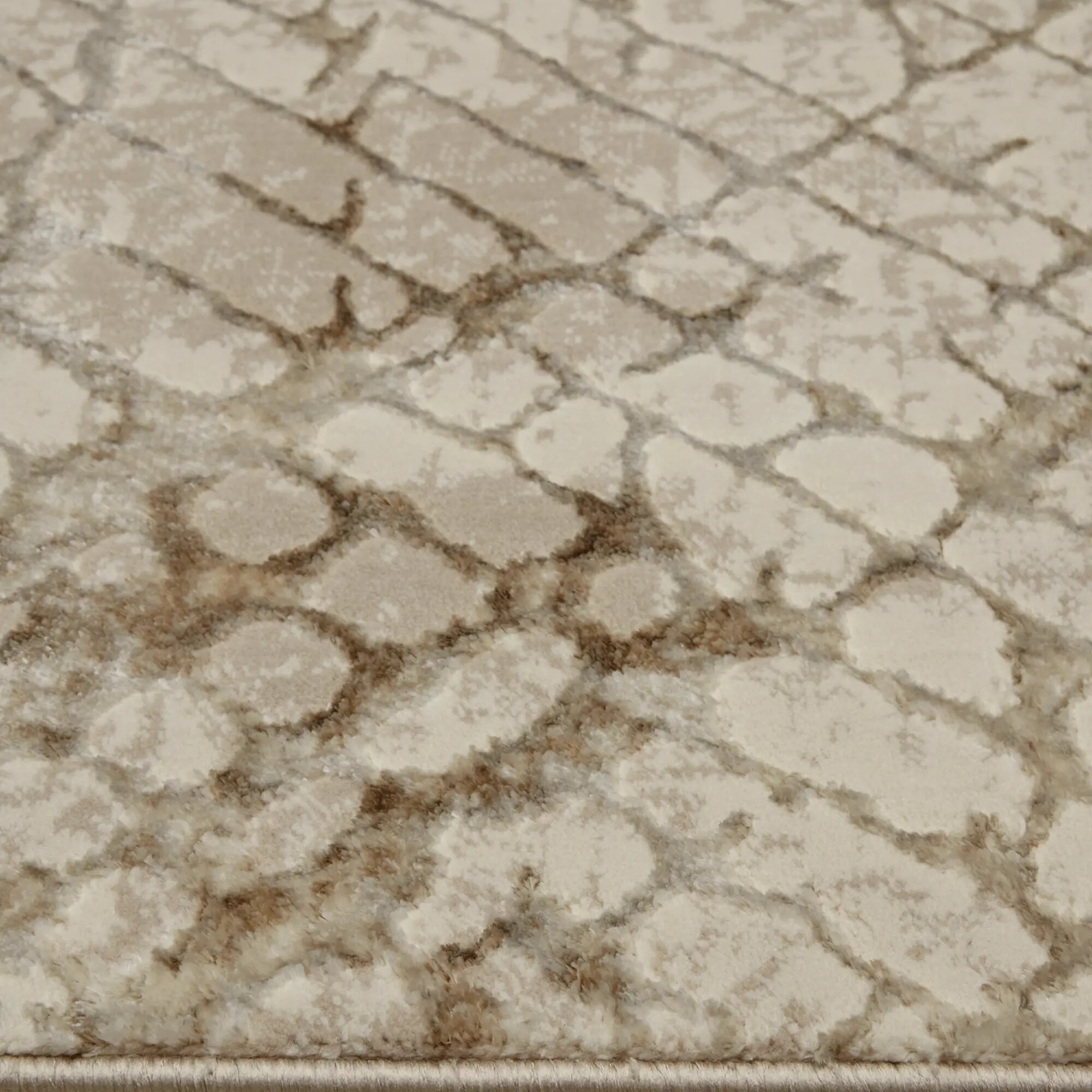 **Ковер полиэстер Велори 13 J** выполнен в прямоугольной форме. Благодаря абстрактному рисунку в сдержанных тонах органично впишется в современные интерьеры в стилях лофт, гранж, арт-деко и т. д. Напольный ковер с рельефным рисунком можно разместить в гостиной, спальне, столовой. Материал ворса устойчив к деформации и истиранию.