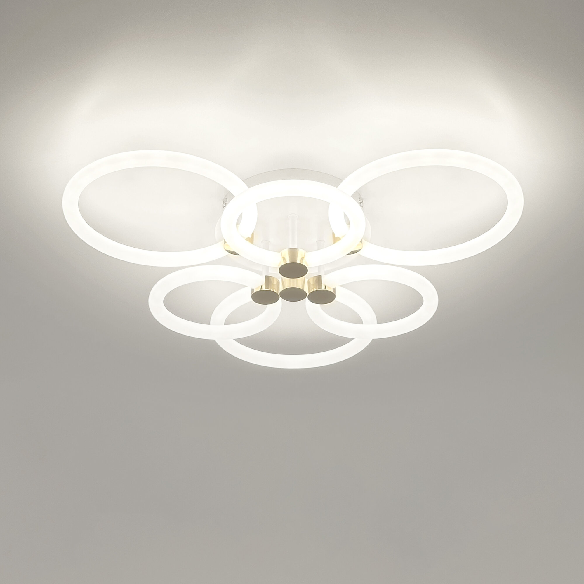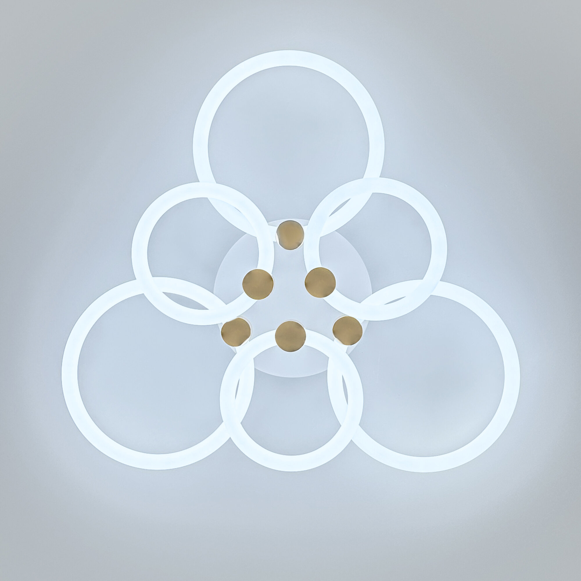 Люстра потолочная светидиодная диммируемая Ritter Ottimo 51613 6 с Алисой и пультом 144Вт 65м² 2700K-6400K цвет белый/золотой
