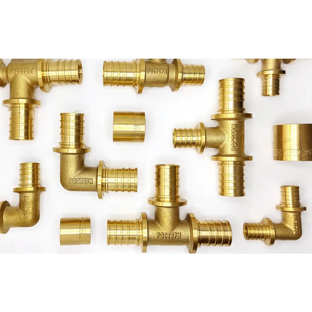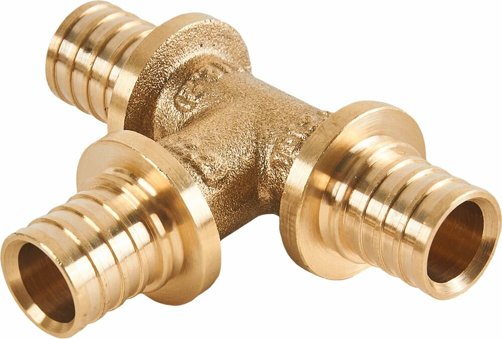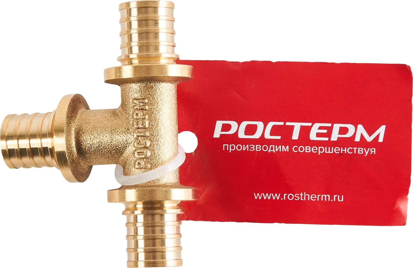 **Тройник аксиальный Ростерм** представляет собой соединительный элемент для полимерных труб. Применяется в системах холодного и горячего водоснабжения, водяного отопления. Фитинг можно применять при открытом и скрытом монтаже трубопроводов. Деталь производится из качественной латуни, которая не подвержена коррозии.