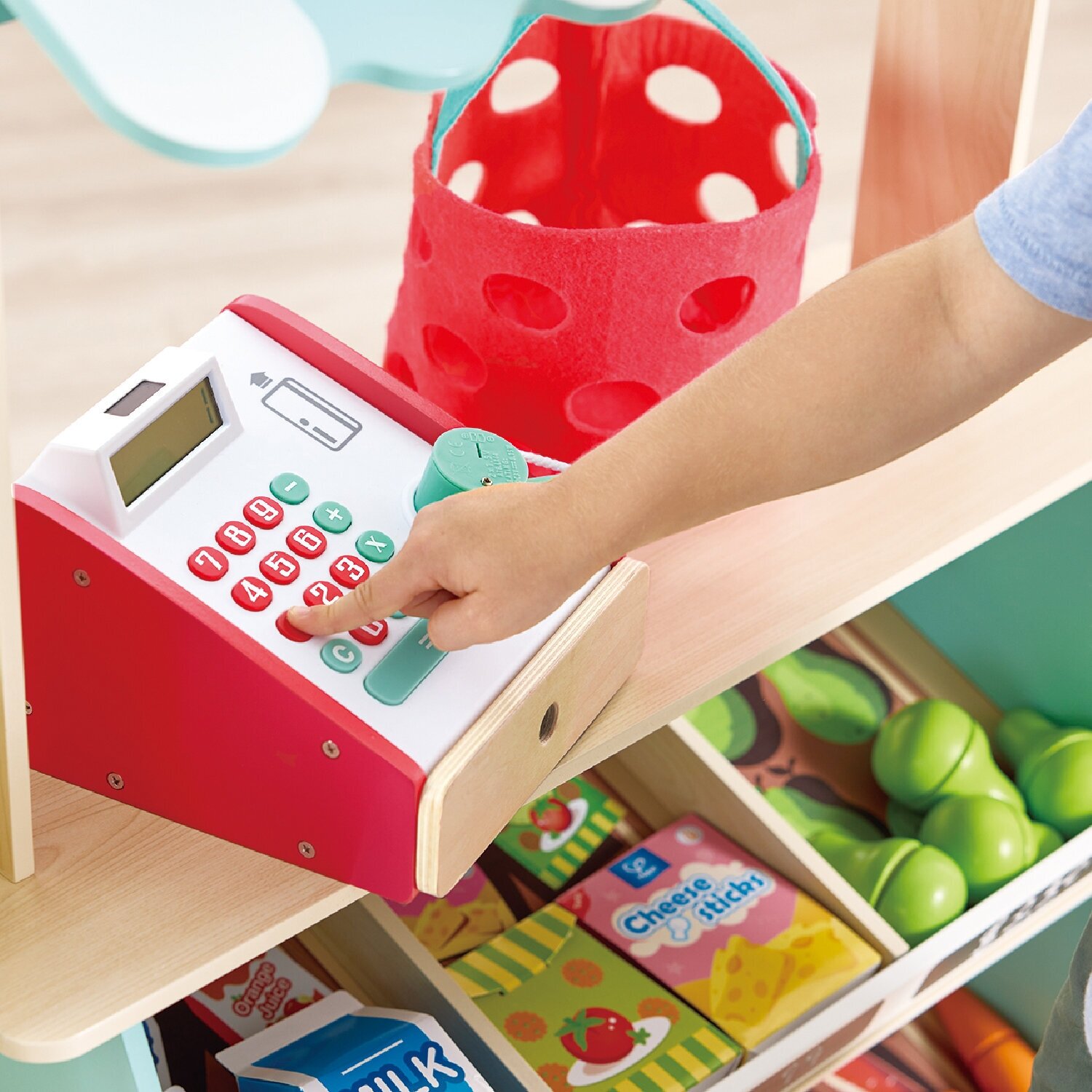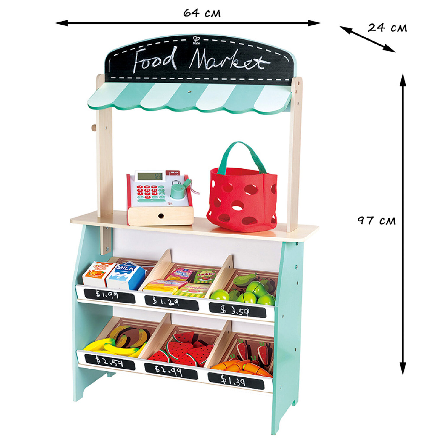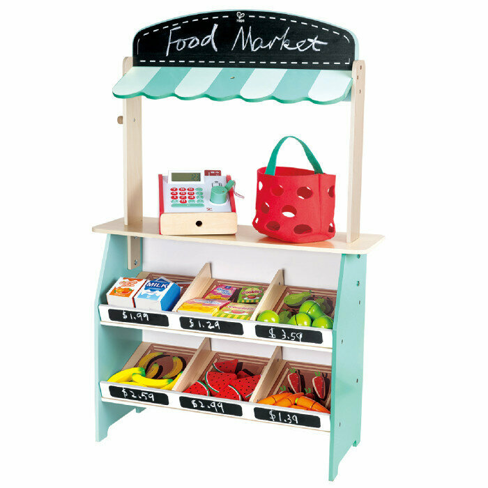 Деревянная игрушка Фермерский супермаркет предлагает интересный способ научить вашего начинающего предпринимателя денежной оценке и основам математики, обменивая игровые деньги на предметы или мелочь. Представьте, что вы работаете в своем любимом магазине или работаете кассиром в своем собственном бизнесе.