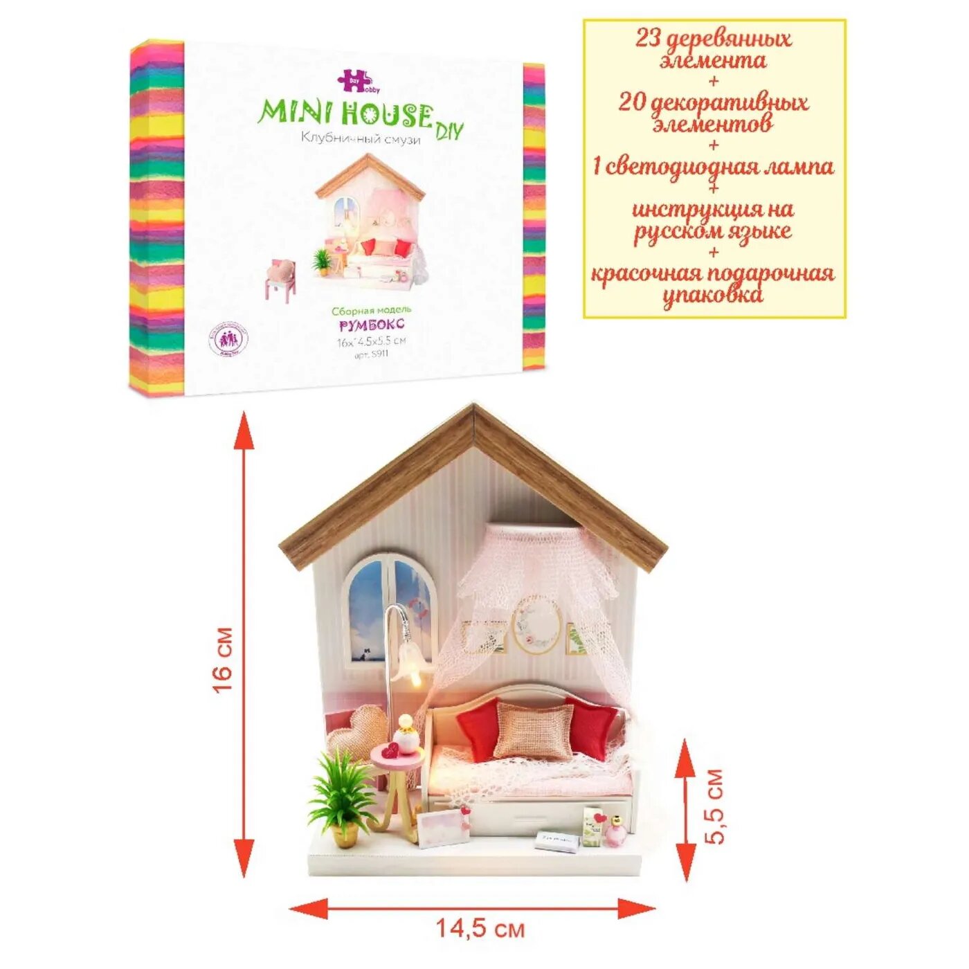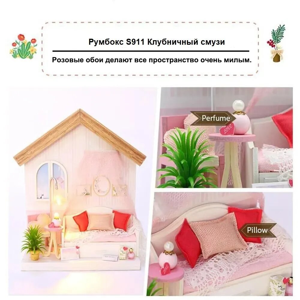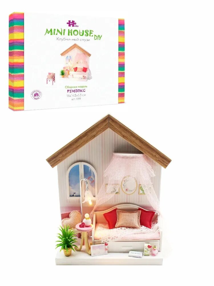 Румбокс Hobby Day / Diy House "Клубничный смузи" S911 Интерьерный конструктор Румбокс Клубничный смузи