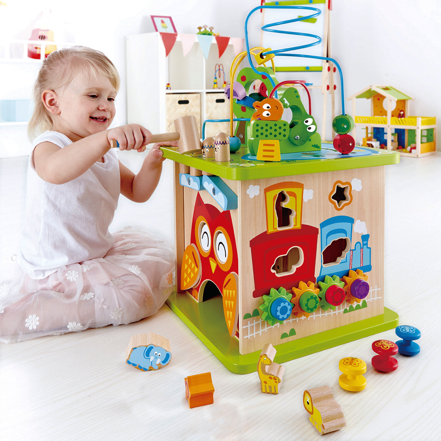 Проводите часы, исследуя, играя и учась с этим замечательным бизибордом! С пятью музыкальными режимами в сочетании с пятью темами куб также включает в себя вращающиеся шестеренки, игру в пинбол, лабиринт из бусин, сопоставление форм и многое другое! Отличная интерактивная игрушка, которая развлечет и увлечет малышей на долгие часы!