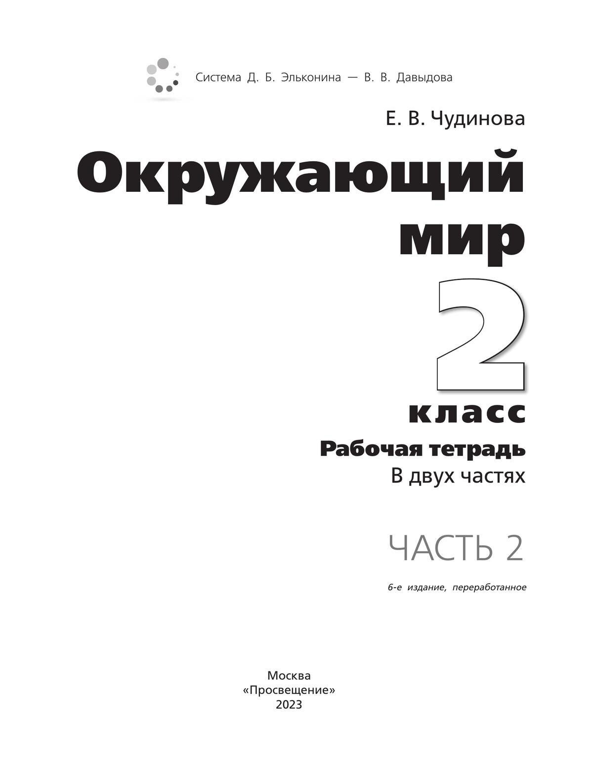 Окружающий мир. 2 класс. Рабочая тетрадь. В 2-х частях. ФГОС (Елена Васильевна Чудинова); Просвещение, 2023