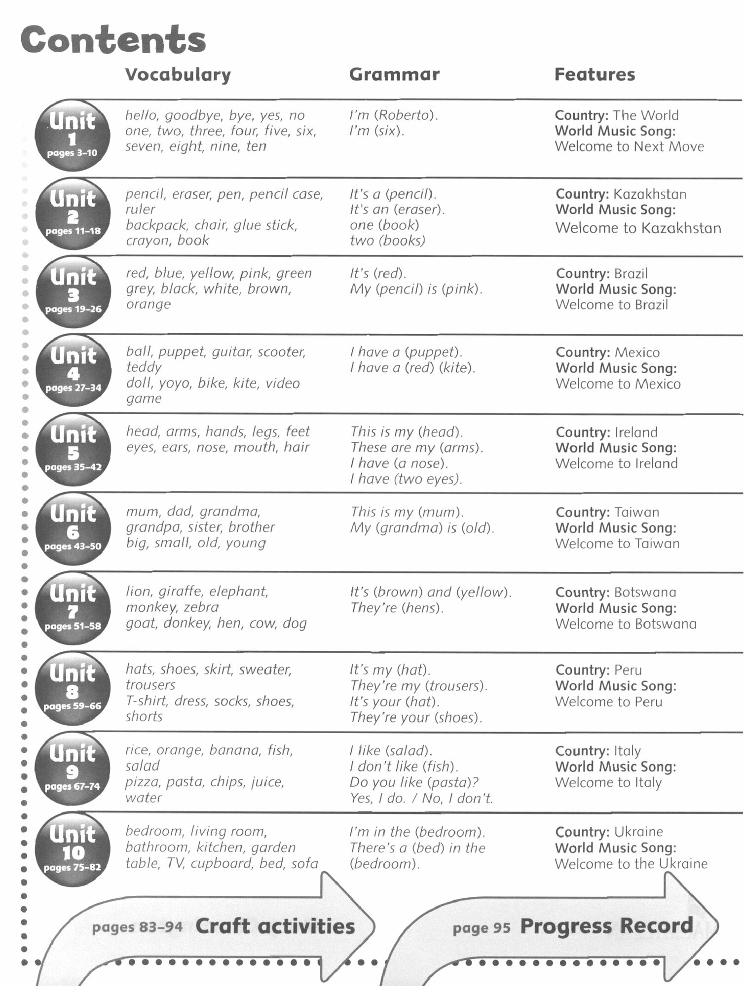 Workbook with a picture dictionary and a progress record to review and consolidate grammar and vocabulary.