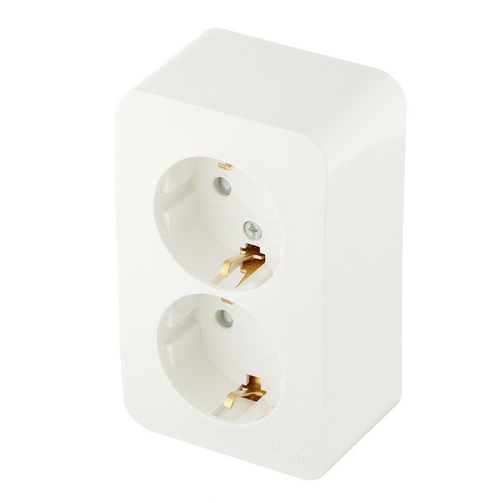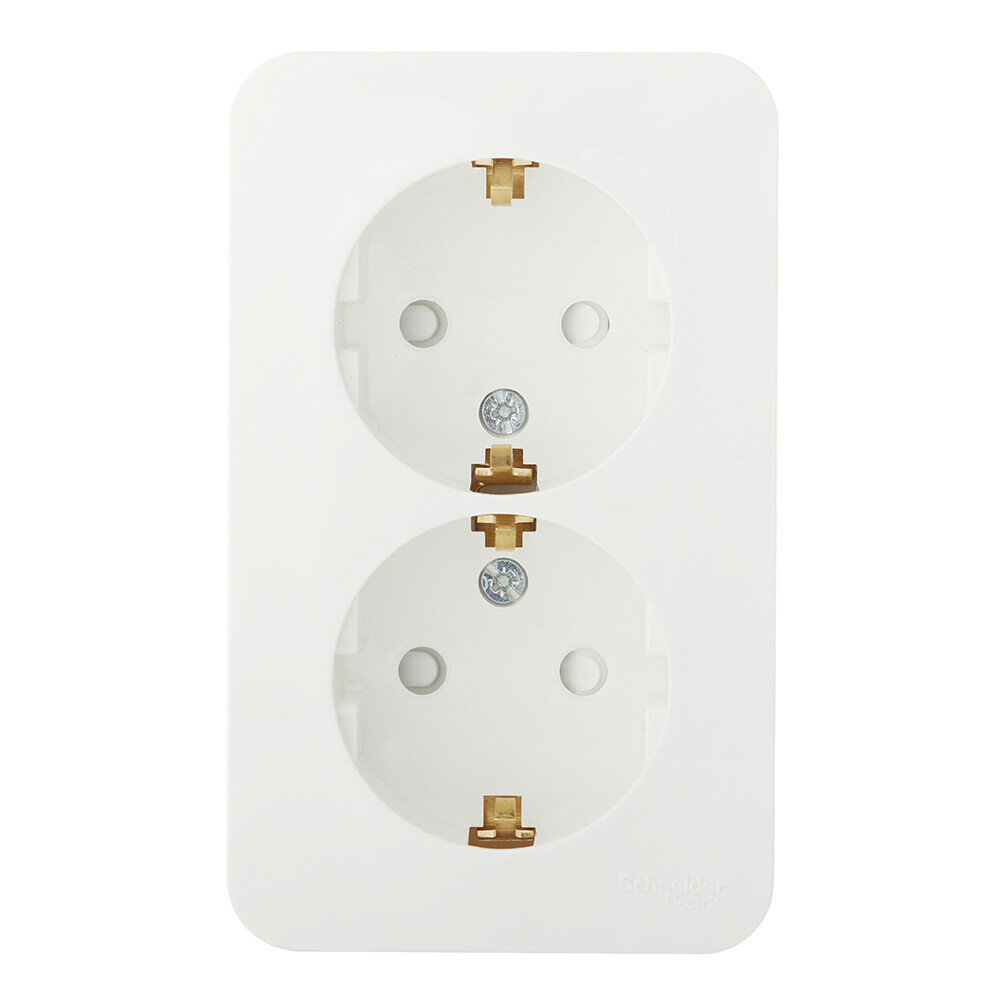 SE Blanca Молочный Розетка двойная с/з со шторками накладного монтажа с изолирующей пластиной 16А 250В Розетка серии BLANCA прекрасно дополняет интерьер помещения, термостойкий материал основания розетки обеспечивает дополнительную жесткость и долговечность конструкцию. Розетка подходит для жилых помещений, коммерческой недвижимости и объектов инфраструктуры. Выполнено из высококачественного износостойкого ABS-пластика.
