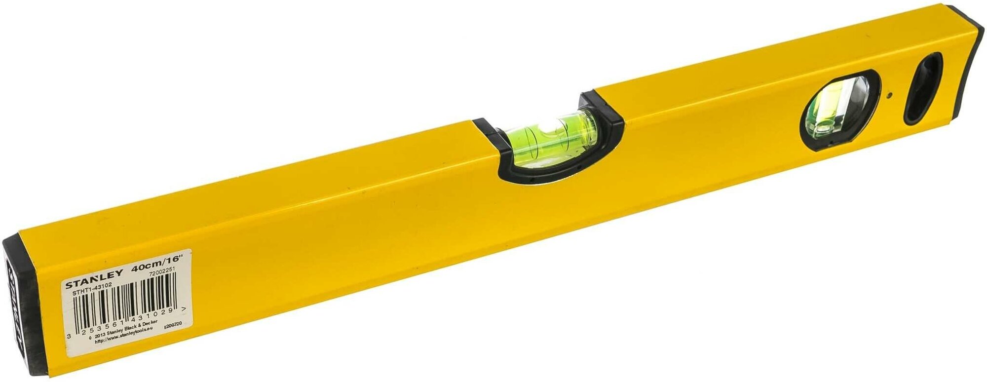 Уровень Stanley на 40 сантиметров довольно точный, погрешности в нем минимум, так что я с его помощью, выровнял стены в доме. Его можно использовать как для горизонтальных, так и для вертикальных измерений. Колба довольно большая и корпус ударопрочный, так что если даже упадет, сбить точность невозможно. Держать в руке удобно, он легкий, и даже снизу планка металлическая есть, чтобы пальцы не скользили. Заказывал я его в этом интернет-магазине, мне друг посоветовал, и как оказалось он был прав. Модель действительно хорошая. Жалко только что сантиметрового деления на нем нет. Так бы можно было и измерять сразу рабочие поверхности, а то за рулеткой приходится бегать.