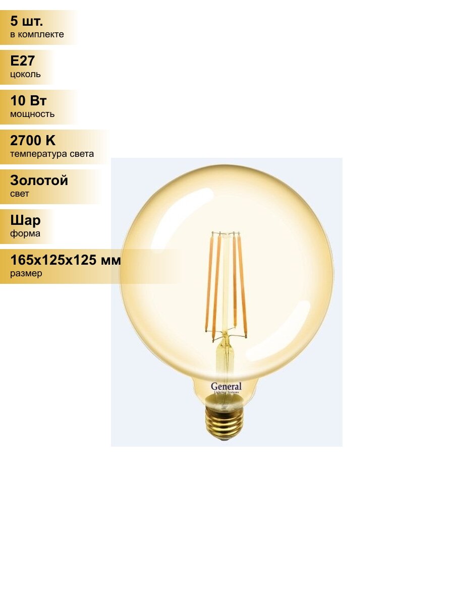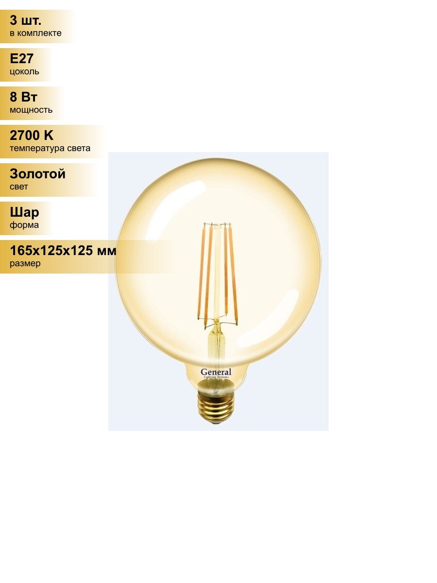 Сервис сравнения цен СкидкаГИД предлагает сравнить цены на товар «Светодиодная лампа GLDEN-G125S-8-230-E27-2700 Золотая General 655309»