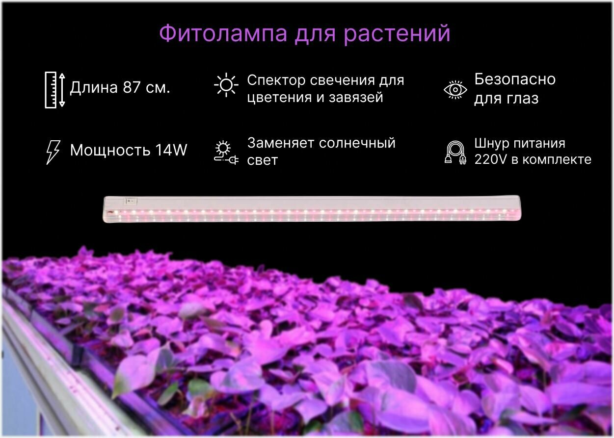 Светильник для растений GLF1-900-14BT-FITO General. Светодиодный фитосветильник для подсветки комнатных растений, рассад, теплиц в условиях недостаточной освещенности. В комплект входят: светильник светодиодный, шнур для подключения, монтажный комплект, руководство по эксплуатации.