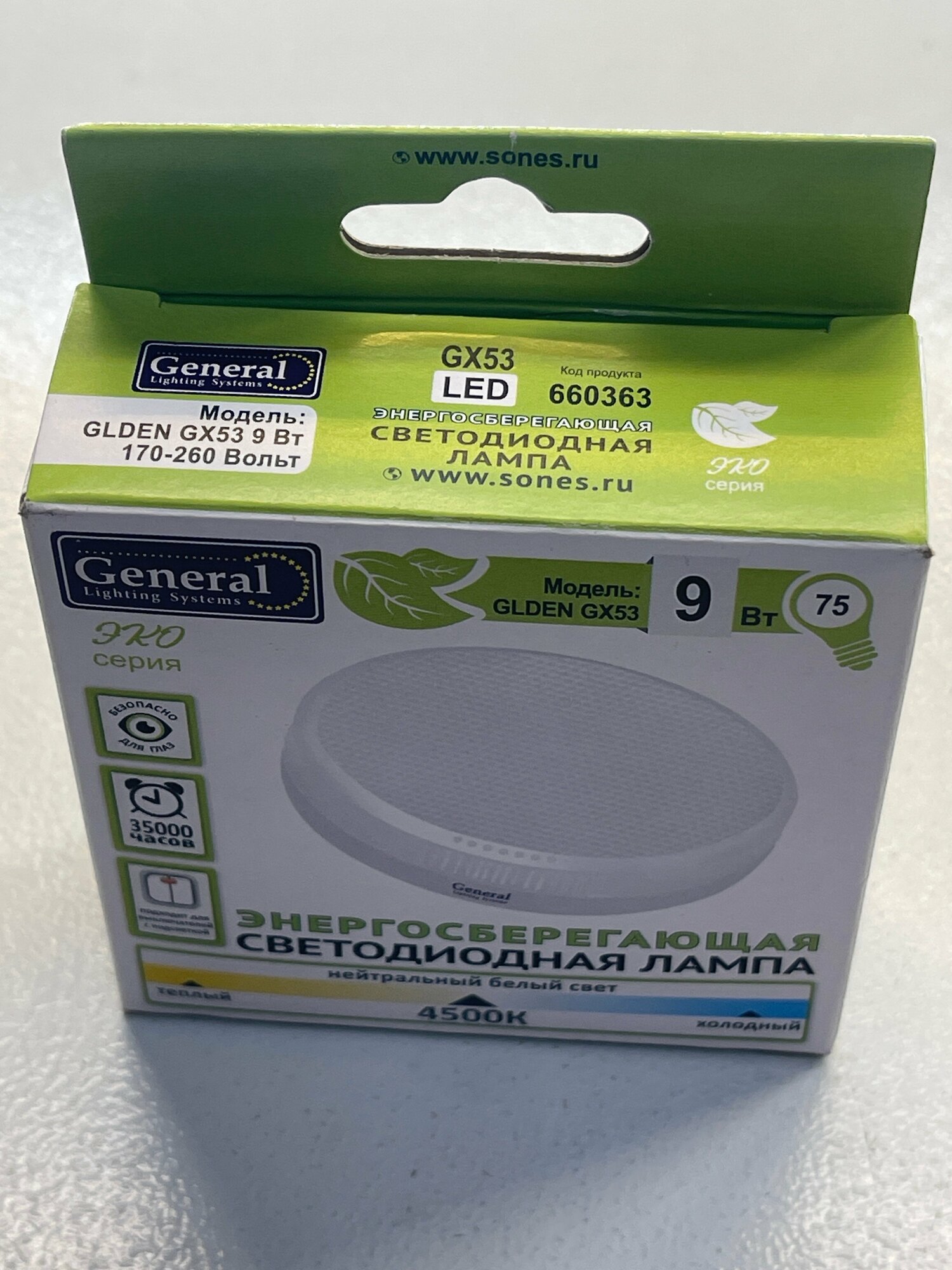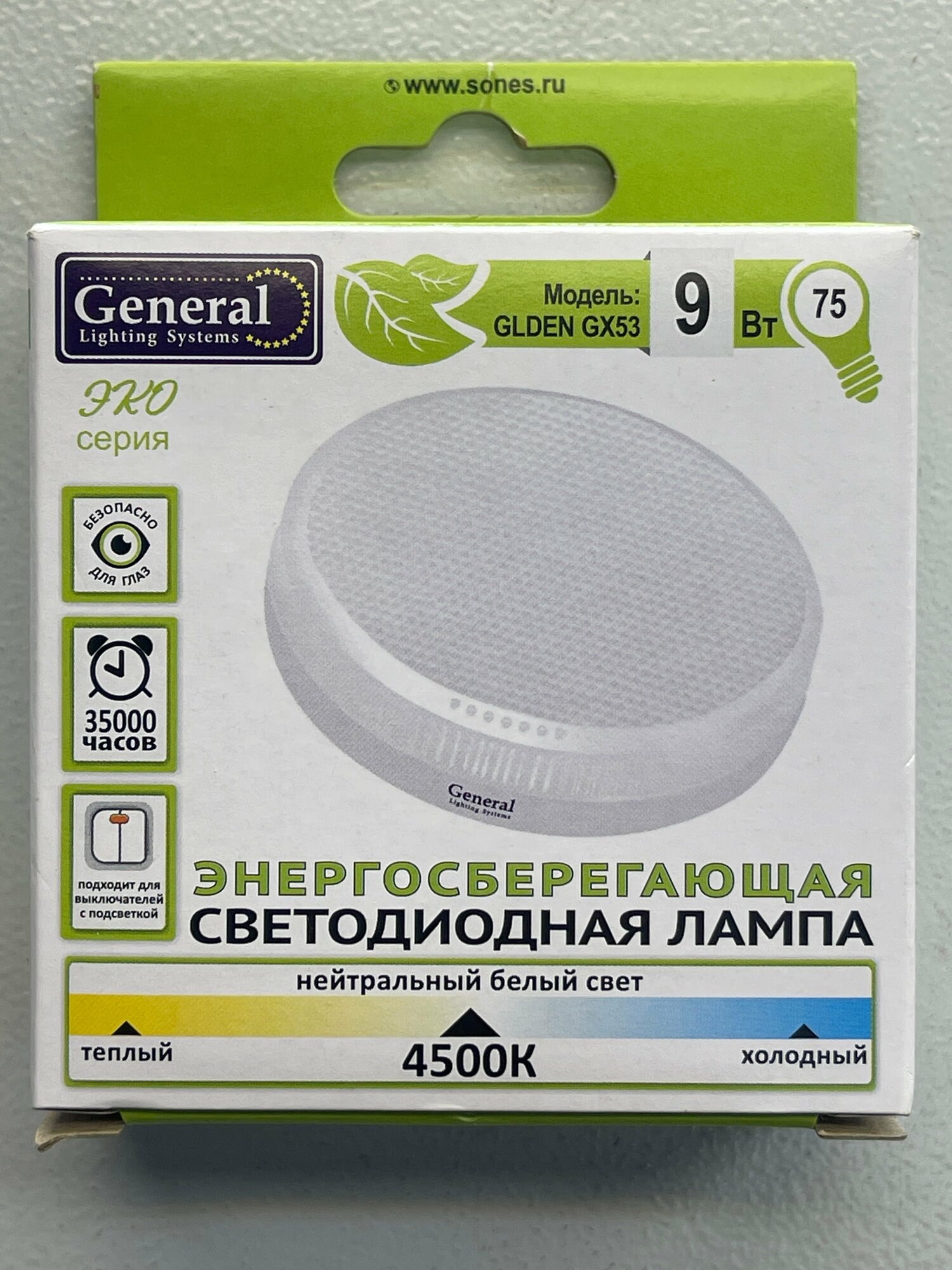На сегодняшний день товар «Лампа GLDEN-GX53-9-230-GX53-4500 Призма General 660363» можно купить с кешбеком в 1 магазине: Яндекс.Маркет