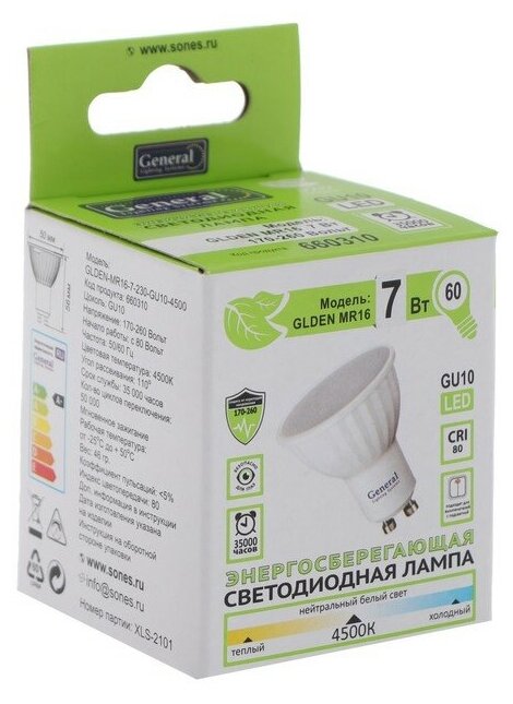 На сегодняшний день товар «Светодиодная лампа GLDEN-MR16-7-230-GU10-4500 General 660310» можно купить с кешбеком в 1 магазине: Яндекс.Маркет