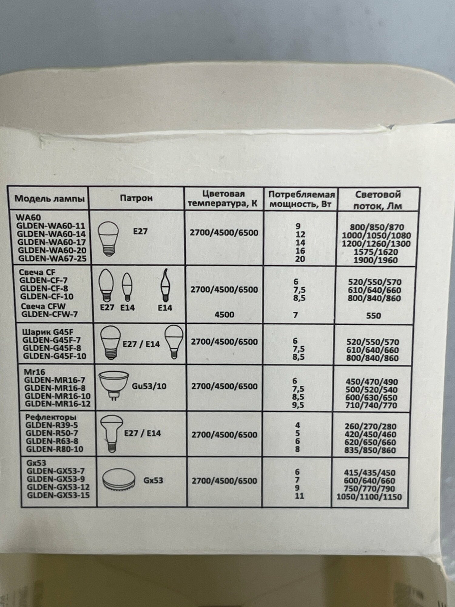 | Форма лампочки | рефлектор, софит |
