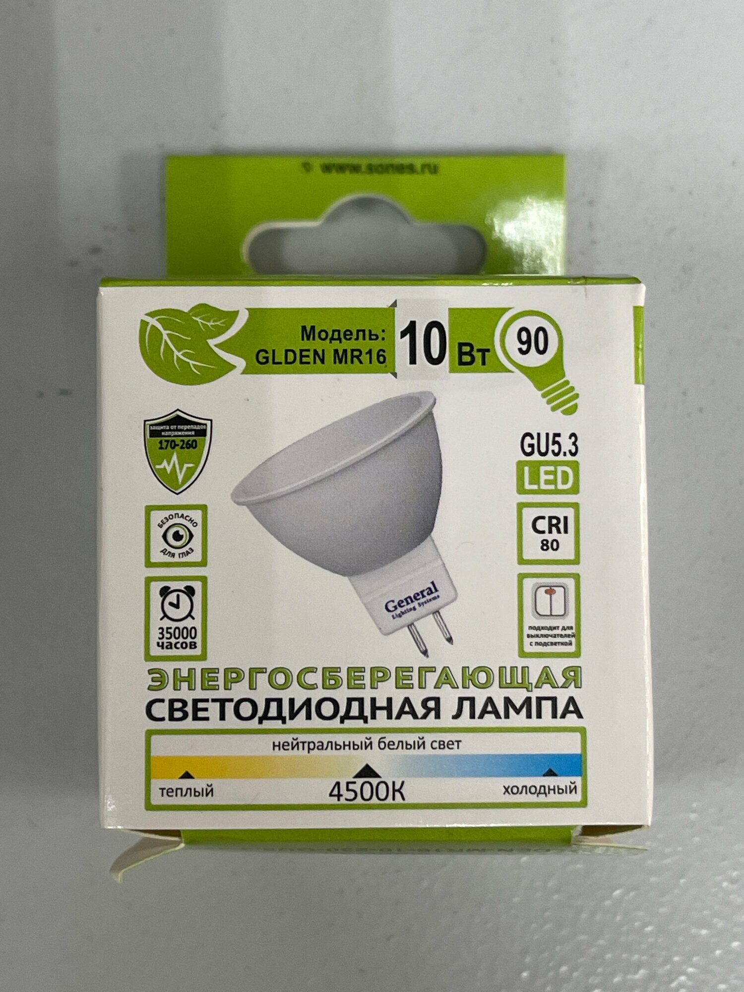Светодиодная лампа GLDEN-MR16-10-230-GU5.3-4500 General 686300