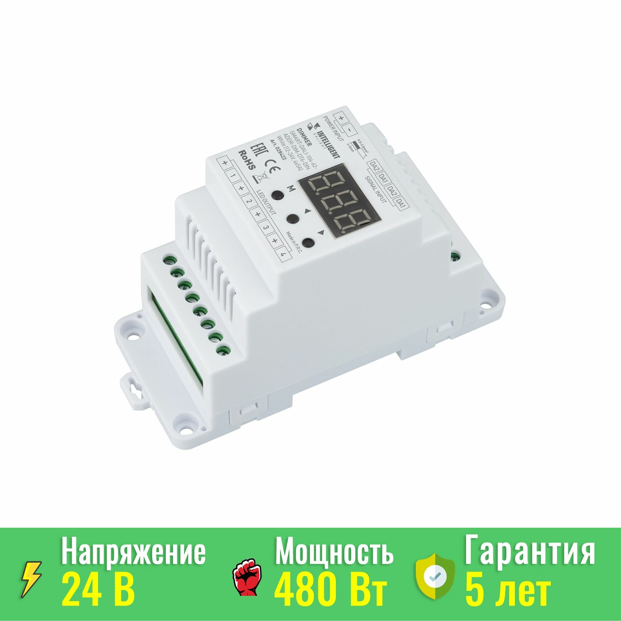 Сервис сравнения цен СкидкаГИД предлагает сравнить цены на товар «INTELLIGENT ARLIGHT Диммер SMART-DALI-104-62-ADDR-DIM-DT6-DIN White (12-24V 4x5A) (IARL IP20 Пластик 5 лет) 028422»
