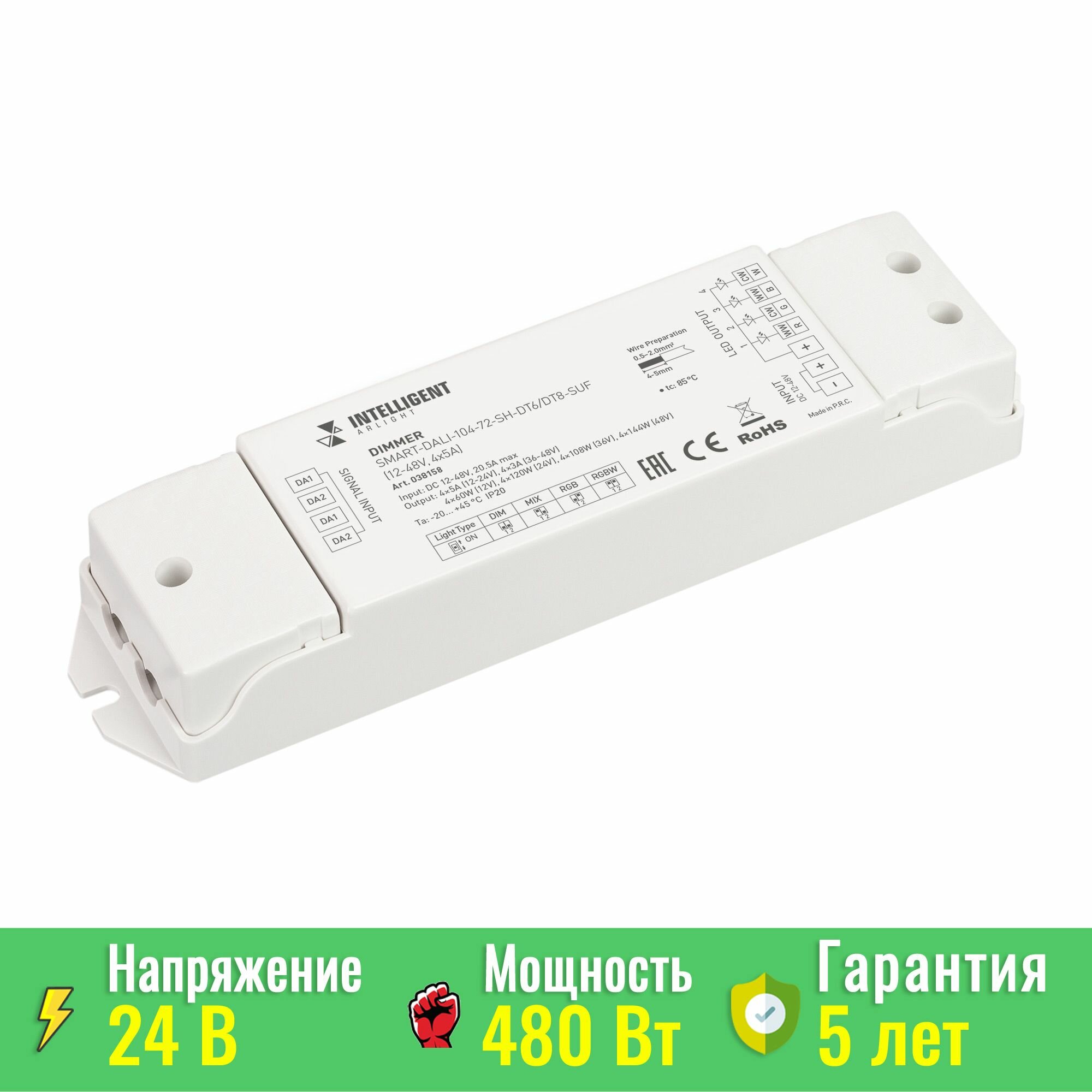 INTELLIGENT ARLIGHT Диммер SMART-DALI-104-62-ADDR-DIM-DT6-DIN White (12-24V 4x5A) (IARL IP20 Пластик 5 лет) 028422