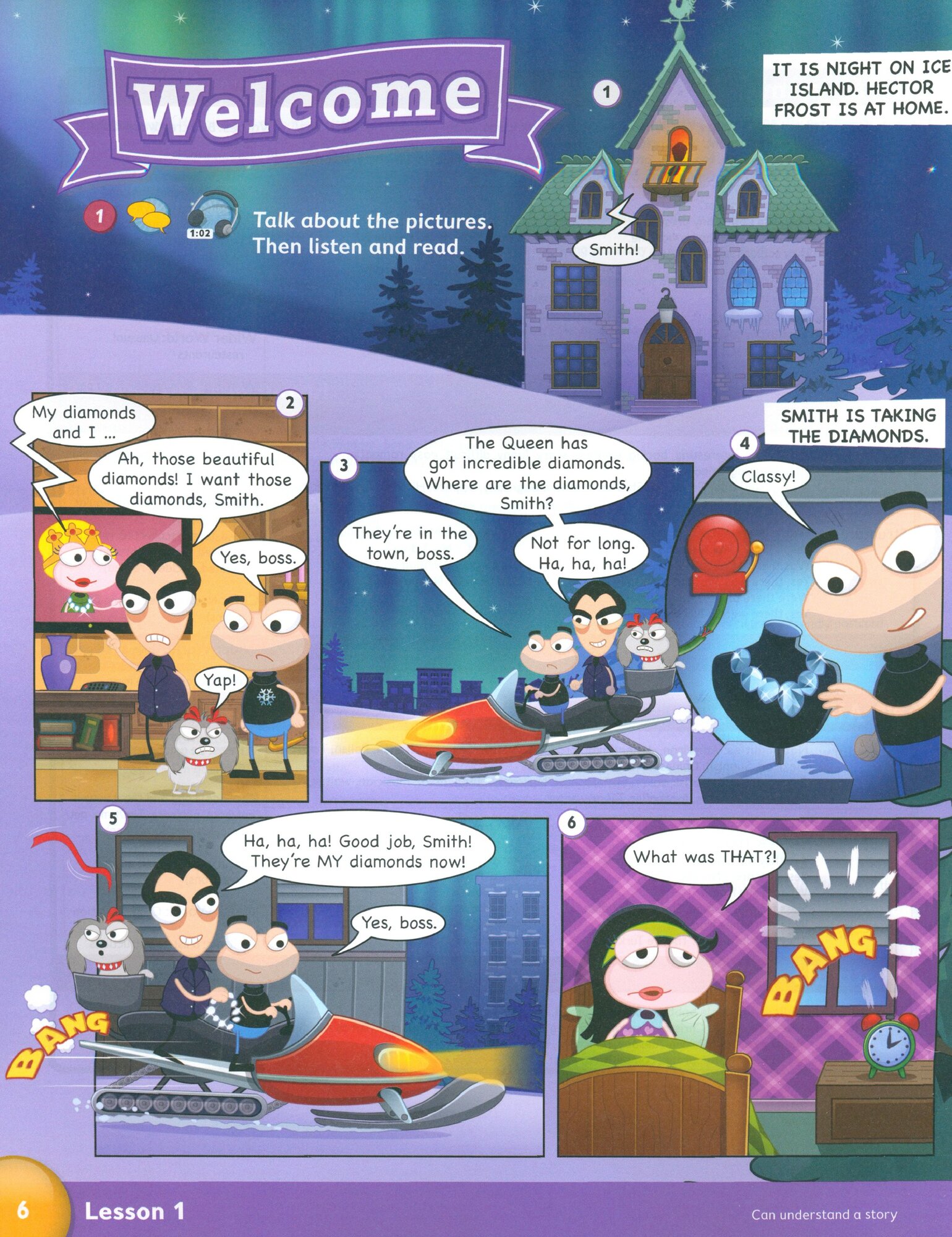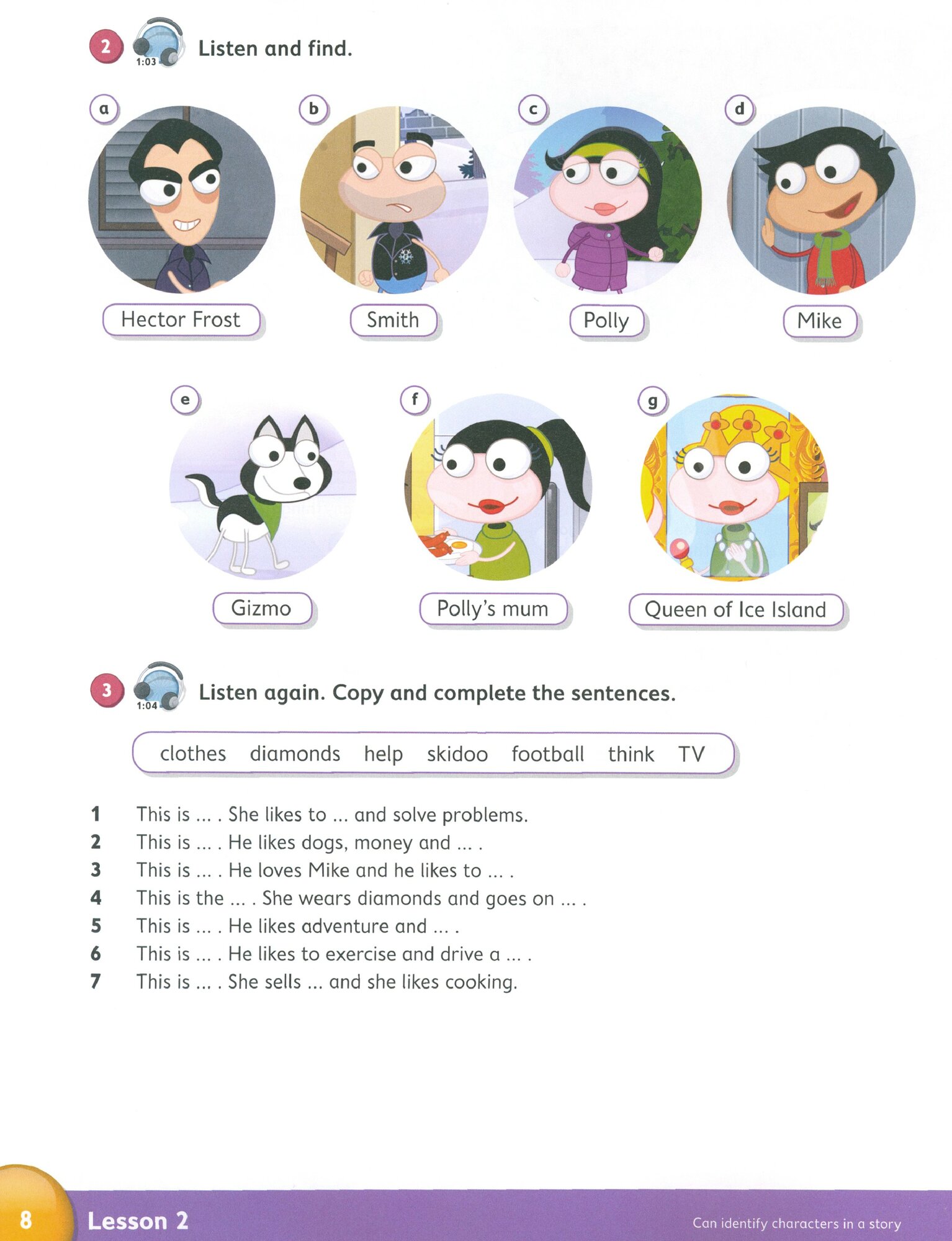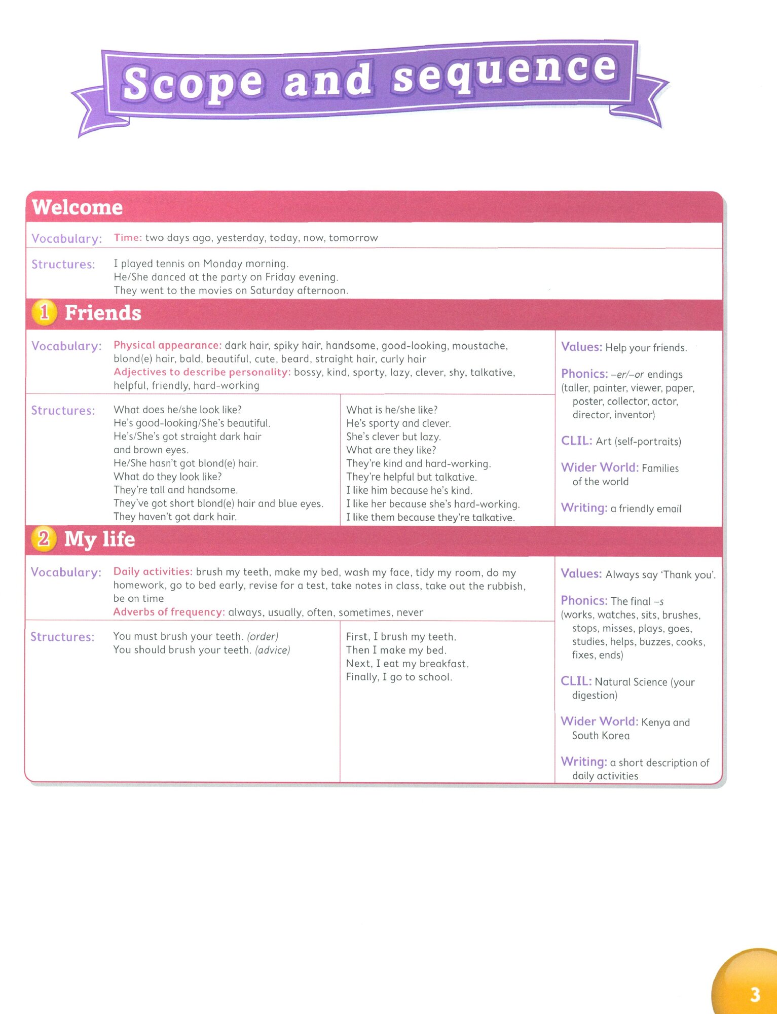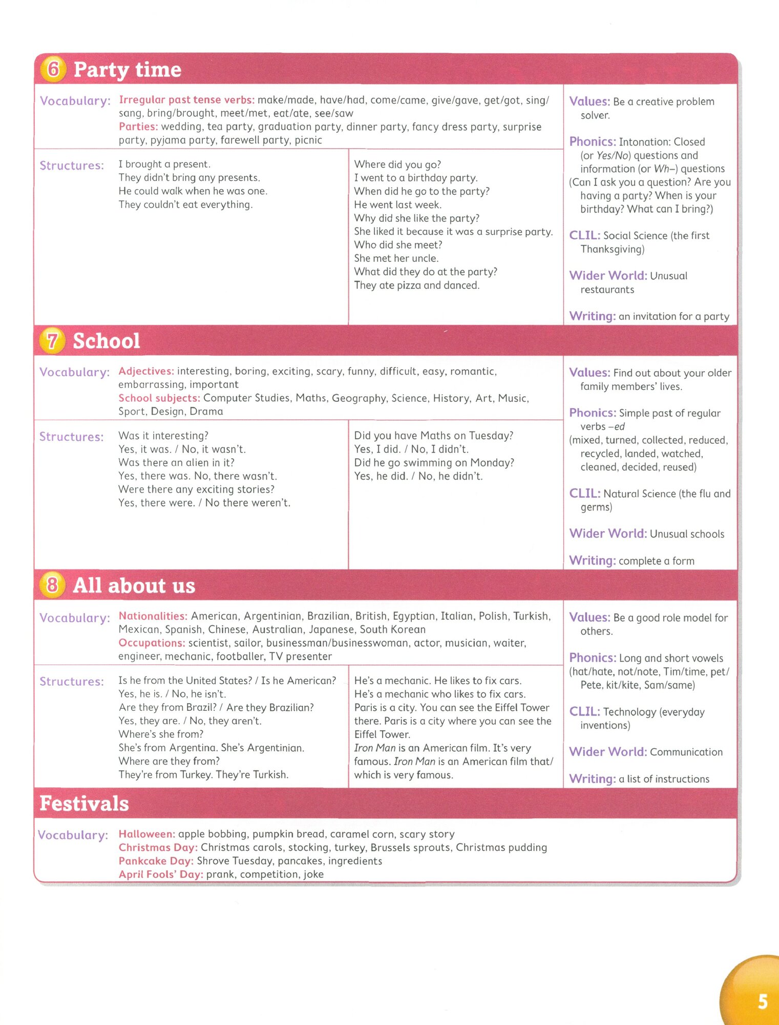 Учебник содержит вступительный блок из шести уроков, который знакомит учеников с персонажами, живущими на отдельном острове. 8 разделов, каждый из которых разделен на 10 отдельных уроков. Отдельная работа со словарным запасом и грамматикой. Возможность вырезать и приклеивать наклейки в каждом блоке заданий.