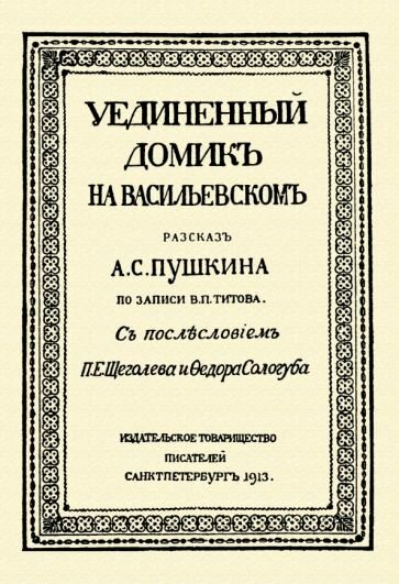 Репринт с издания. Спб., 1913. Это история о бесе, влюбленном в ангельскую девушку. «Уединенный домик на Васильевском» — фантастическая повесть Владимира Титова, созданная по сюжету Александра Пушкина. В 1828 году Пушкин в салоне у Карамзиных рассказал мистическую повесть. Присутствовавший на вечере Титов впоследствии записал её и с разрешения Пушкина опубликовал. Владимир Павлович Титов (1807 — 1891) — русский писатель, чиновник, дипломат, действительный тайный советник. Племянник министра юстиции Д. В. Дашкова. Он исполнял обязанности генерального консула в Дунайских княжествах (1839) и посланника в Константинополе.
