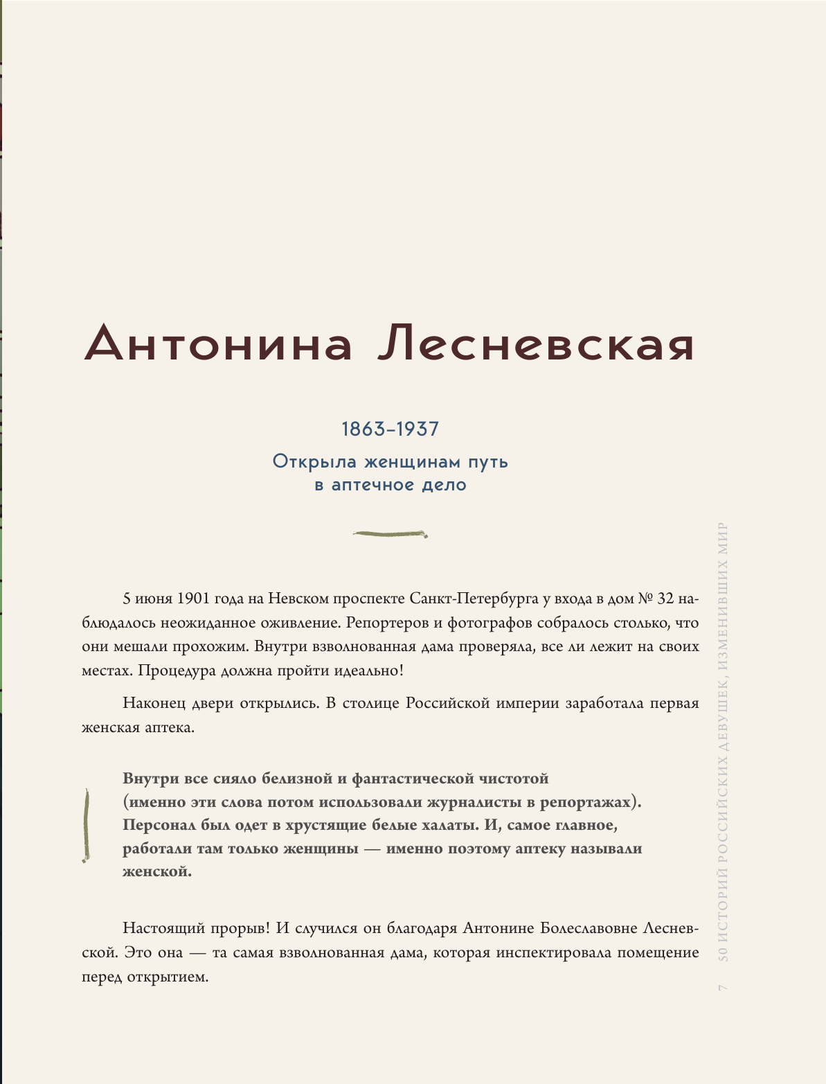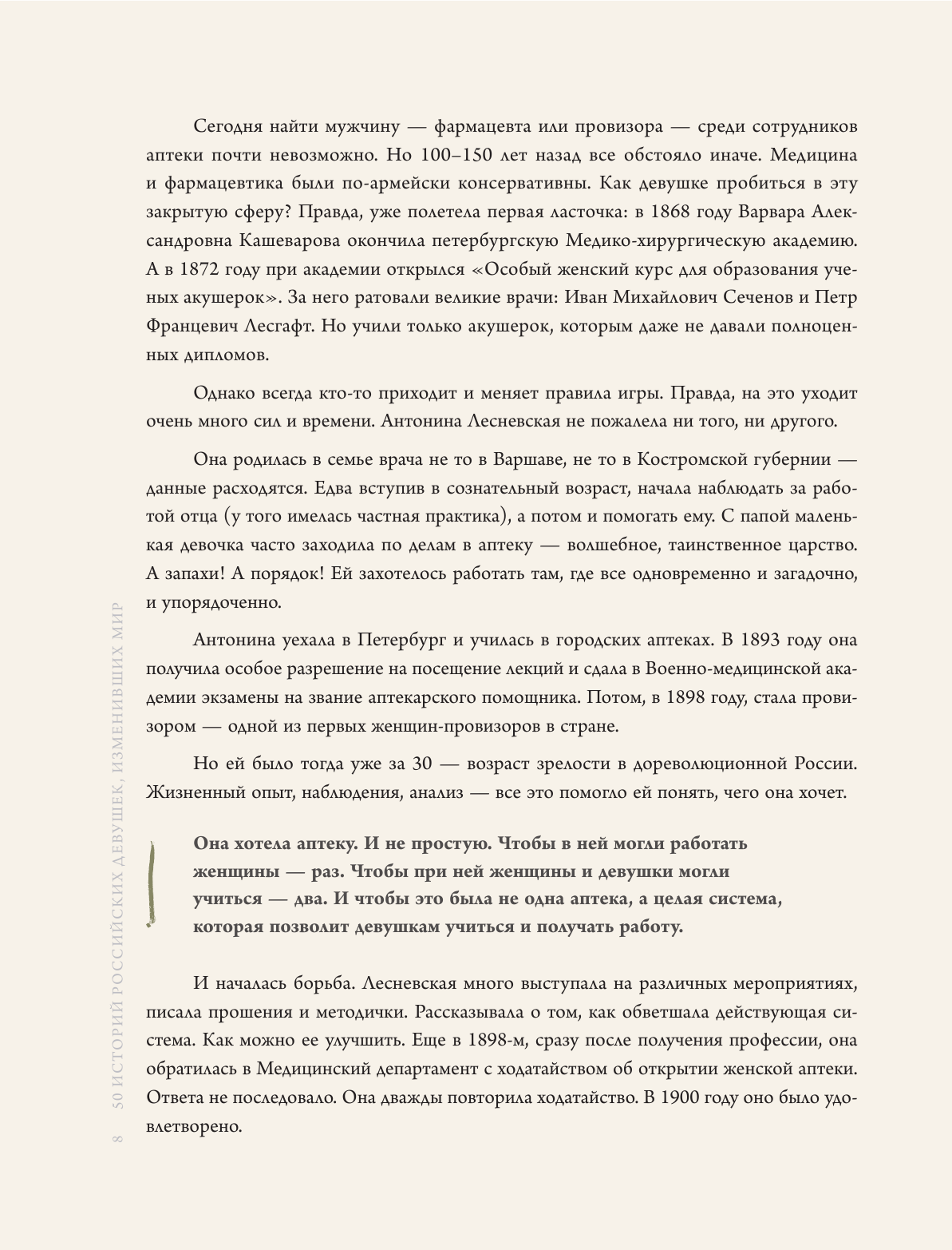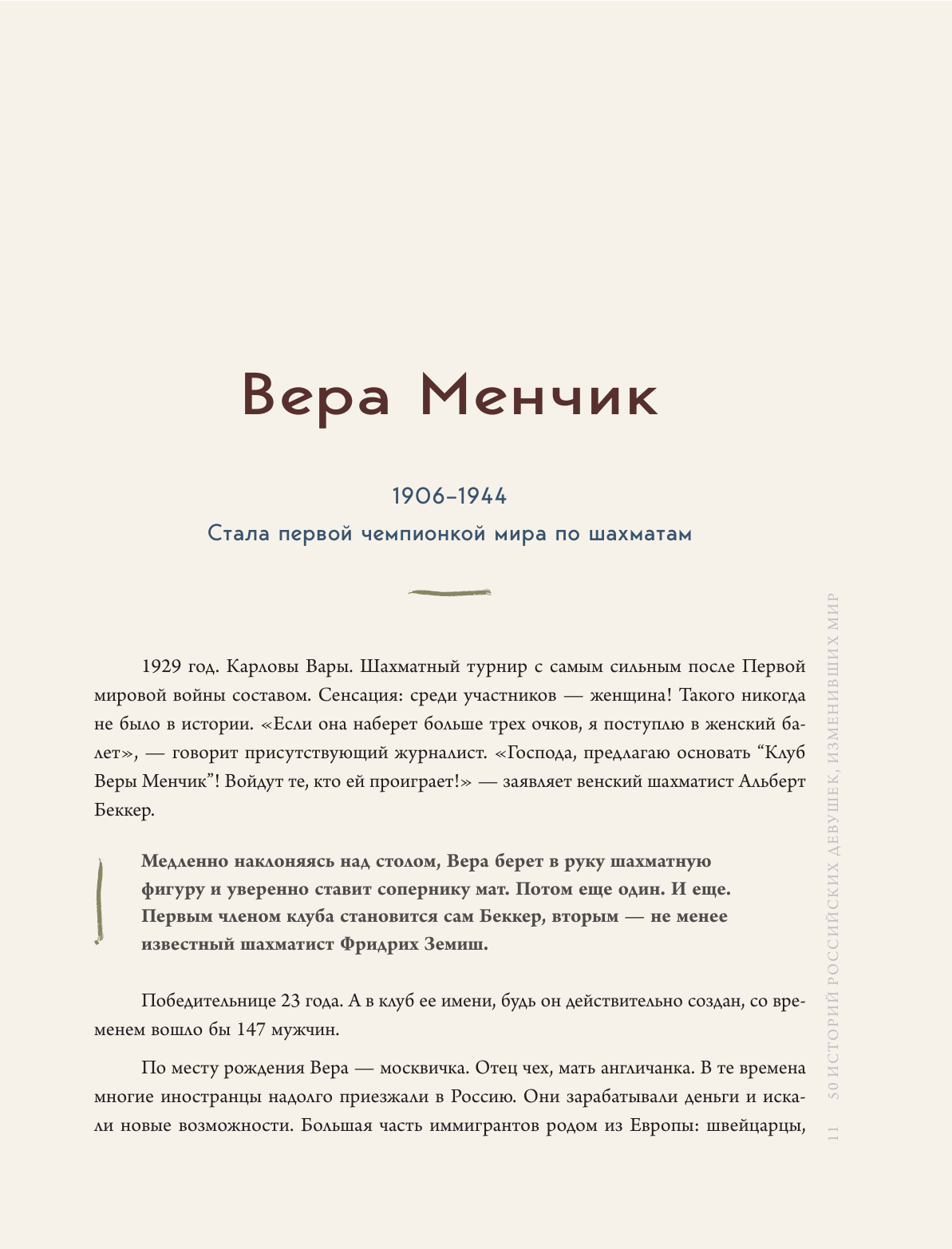 Одна их них завоевала титул чемпиона мира по шахматам. Другая – стала летчиком-испытателем. Третья – изучала Арктику. Четвертая – наравне с мужчинами покоряла Казбек… В этой книге собраны удивительные истории девушек, родившихся в Царской России. Более 100 лет назад каждая из них совершила маленький переворот, пойдя наперекор близким людям, чиновникам и общественному мнению. И все ради того, чтобы заниматься любимым делом.