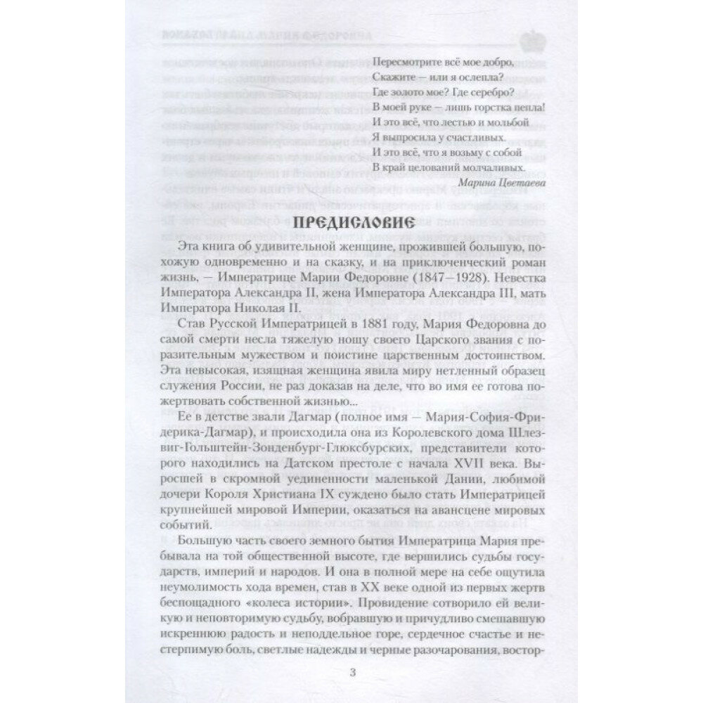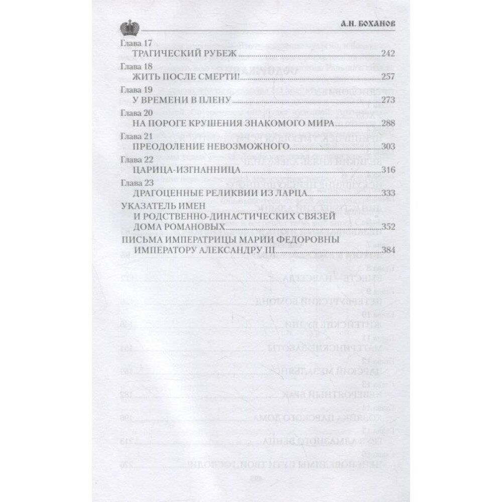 Эта книга выдающегося российского историка А.Н. Боханова посвящена удивительной женщине, прожившей большую, похожую одновременно и на сказку, и на приключенческий роман жизнь. Невестка Императора Александра II, жена Императора Александра III, мать Императора Николая II. Большую часть своего земного бытия Императрица Мария пребывала на той общественной высоте, где вершились судьбы государств, империй и народов. И она в полной мере на себе ощутила неумолимость хода времен, став в XX веке одной из первых жертв беспощадного "колеса истории". Но эта маленькая женщина смогла преодолевать, казалось бы, непреодолимое, научилась находить луч света надежды даже в непроглядной тьме окружающей действительности.