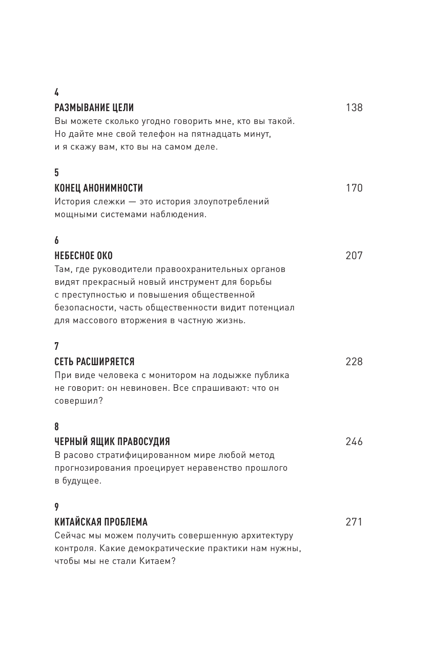 Технологии распознавания лиц, автоматические считыватели автомобильных номеров, летающие дроны, алгоритмы прогнозирования поведения — все это попадает в фокус внимания автора, заставляя его задуматься о том, кому может быть выгодно массовое использование технологий слежки и как оно влияет на нашу жизнь.