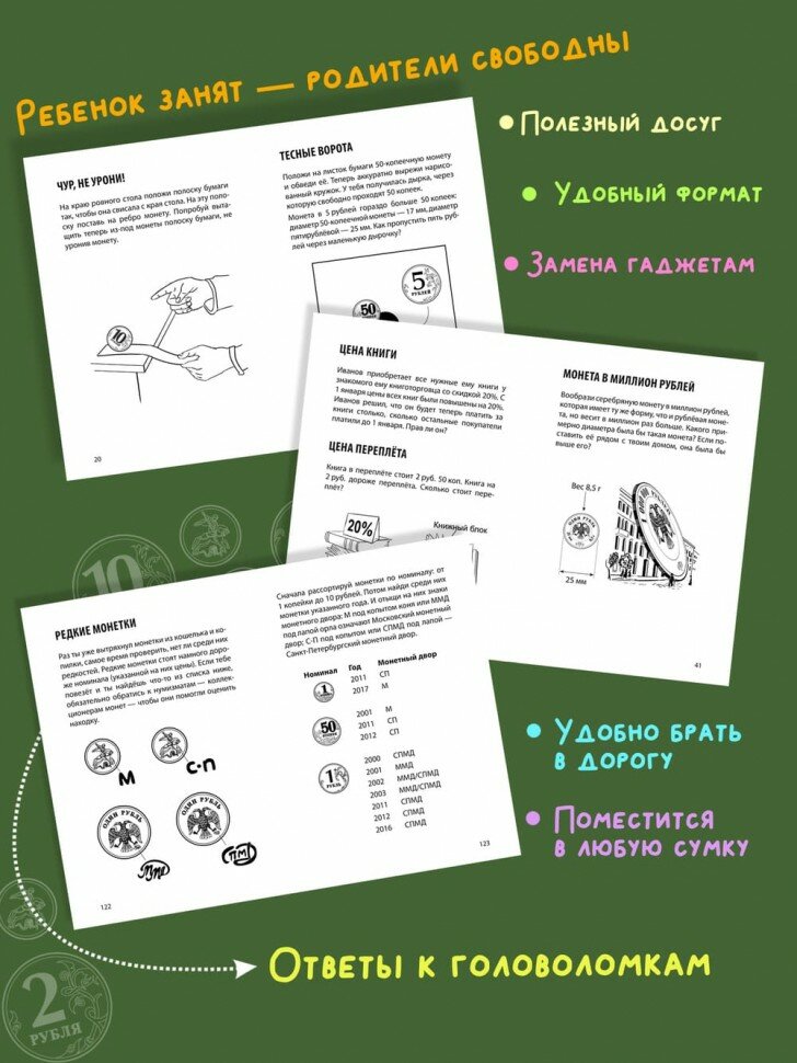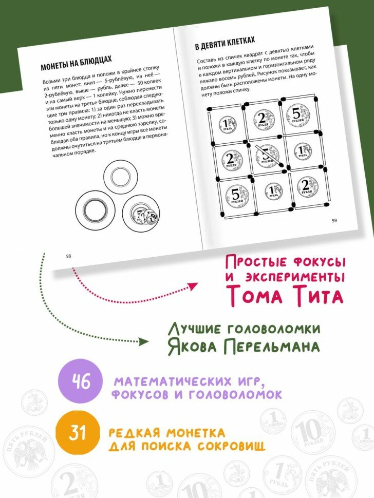 Игры с монетами развивают логику, пространственное воображение, нестандартное мышление и креативность. А ещё это увлекательное путешествие в мир математики поможет привить детям вкус к настоящему обучению, научить их размышлять, а не зубрить или списывать.