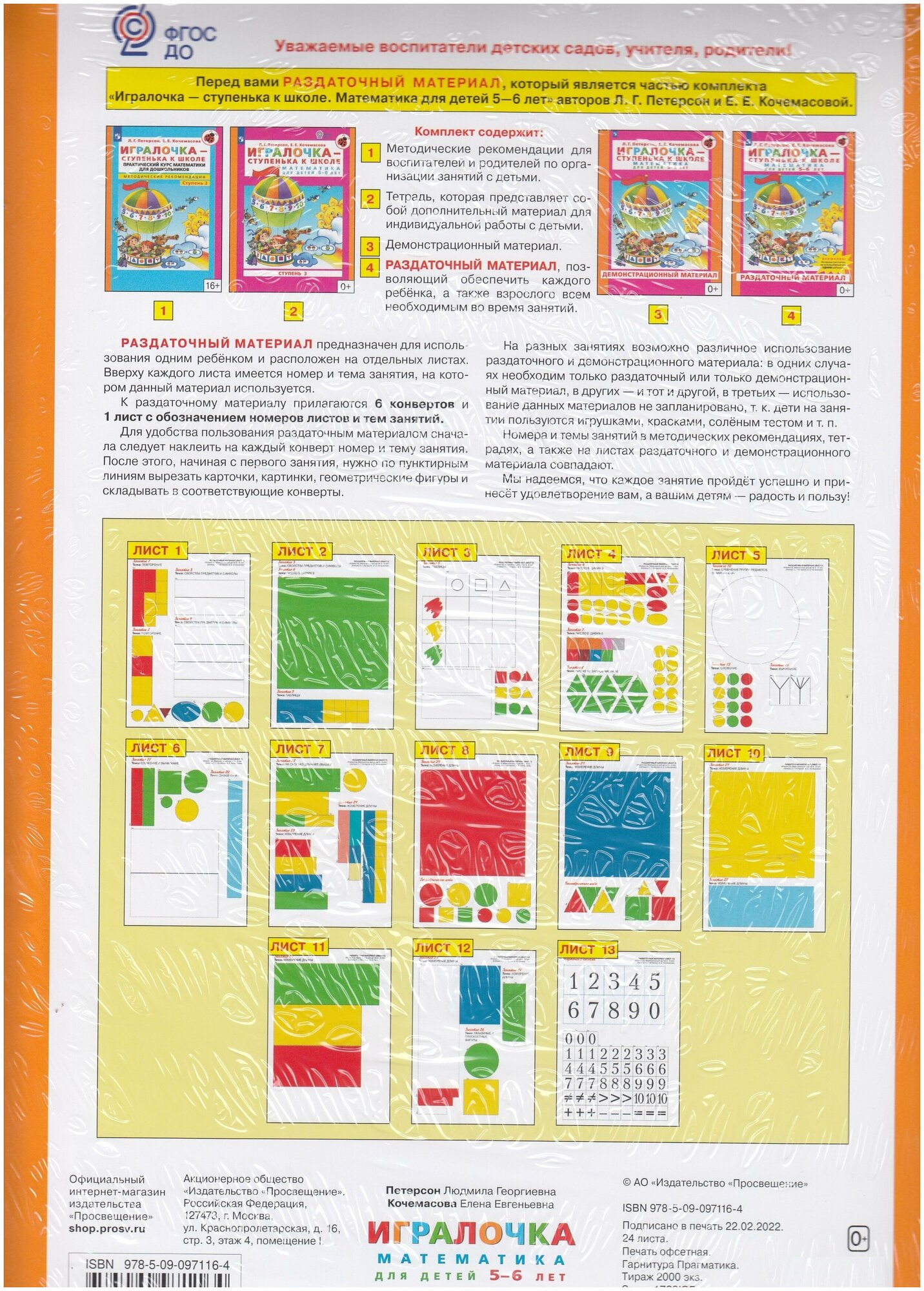 Игралочка - ступенька к школе. Математика для детей 5-6 лет. Раздаточный материал (Кочемасова Елена Евгеньевна, Петерсон Людмила Георгиевна); Просвещение, 2023