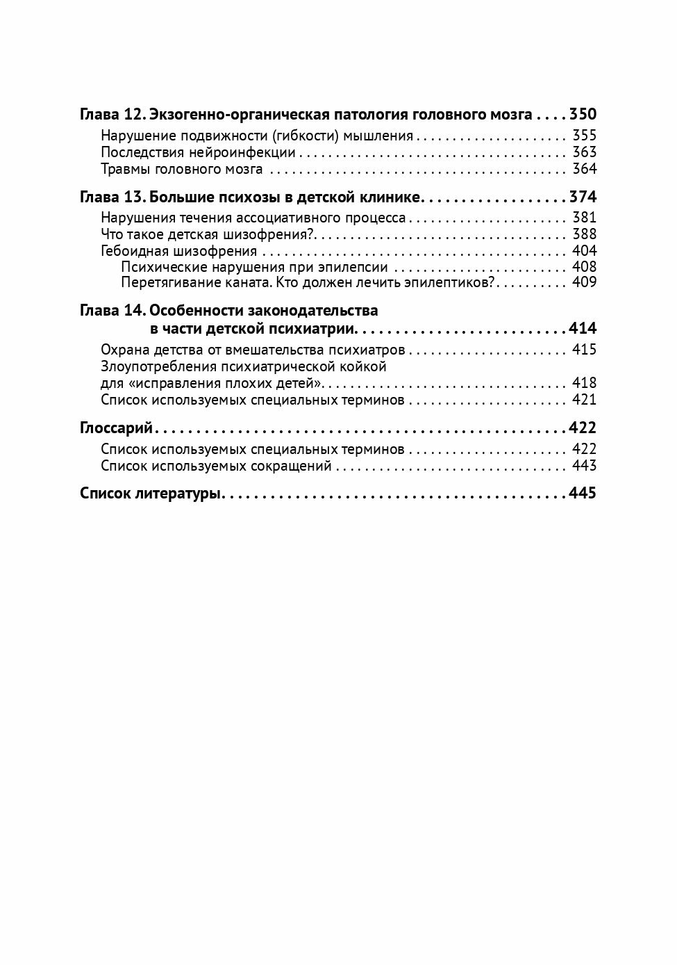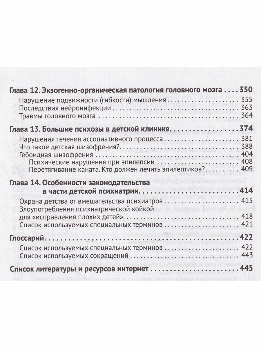 Главным достоинством публикации являются многочисленные примеры детской клинической психиатрии из личной практики создателя этой книги с авторской схемой решения проблемы: от диагноза до практических рекомендаций.