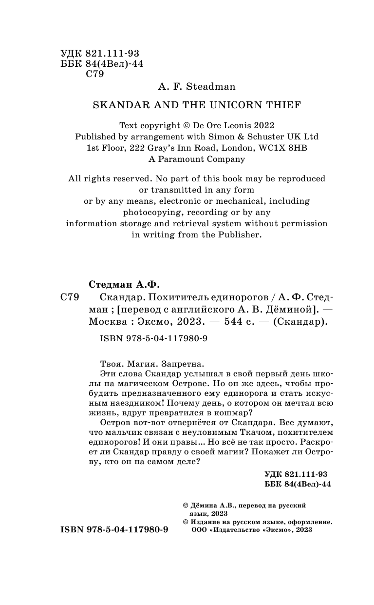 Скандар. Похититель единорогов (Стедман Аннабель Ф.); ООО "Издательство "Эксмо", 2023