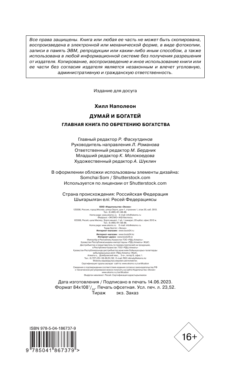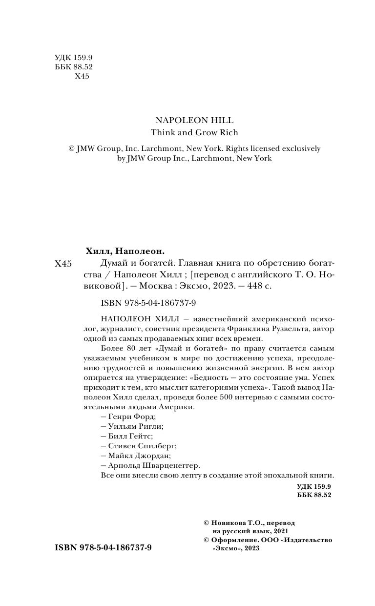 Думай и богатей. Главная книга по обретению богатства (Хилл Наполеон); ООО "Издательство "Эксмо", 2023