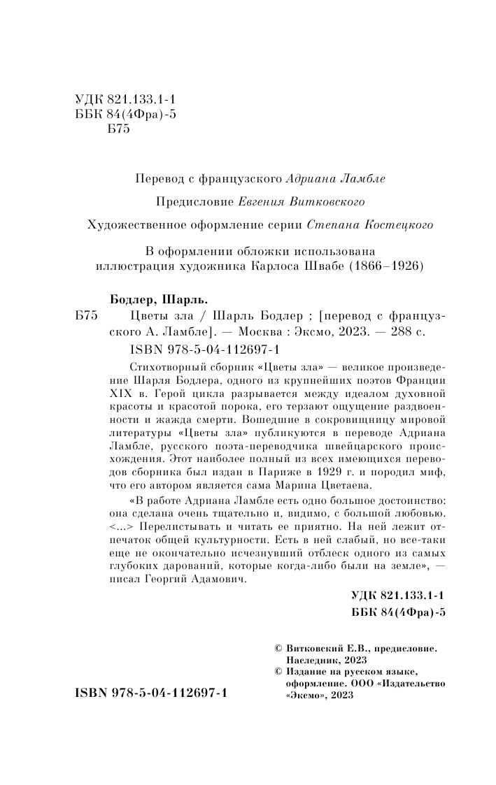Книга: Цветы зла (Шарль Бодлер); Эксмо, Редакция 1, 2023