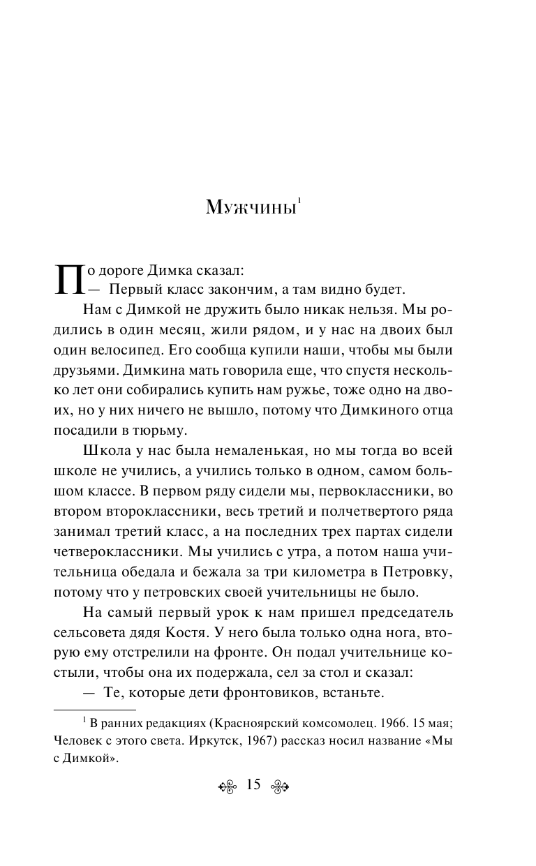 Главные герои рассказов Валентина Распутина (1937—2015) — дети. И совсем маленькие, и уже повзрослевшие. Вот мальчишка, проснувшись и обнаружив, что мама куда-то ушла, играет со своей старой игрушкой — одноногим зайкой. Рассердившись, что не знает, где мама, он бросает зайку на пол и пинает его. И тут же раскаивается: ведь игрушка не может никуда убежать. И мальчик плачет от одиночества. А вот взрослые дети съезжаются к умирающей старушке — своей матери. И это, кажется, единственный повод снова встретиться всем вместе, когда у каждого своя жизнь, полная забот. Эти рассказы наполнены любовью к людям: к детям и их родителям. Они показывают, как трудности закаляют характер, даже если встречаешься с ними на совсем еще небольшом жизненном пути.