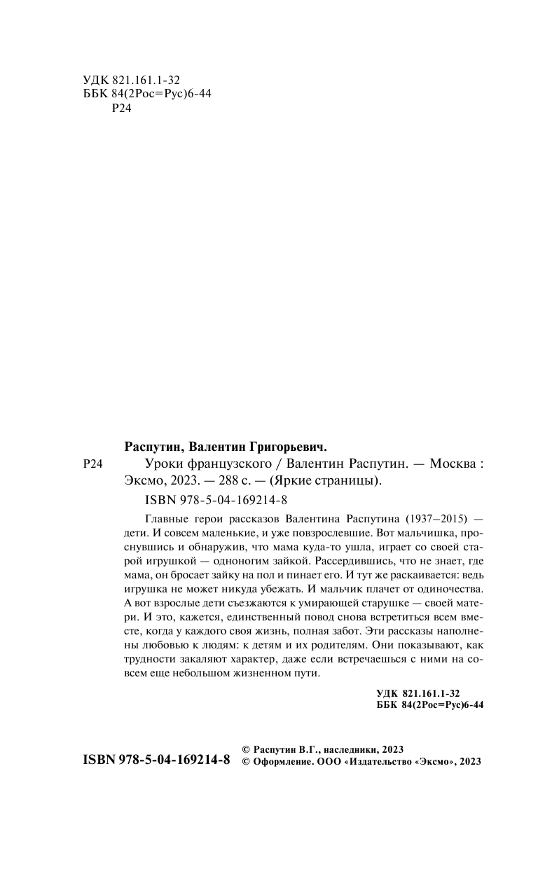 Книга: Уроки французского (Валентин Распутин); Эксмо, Редакция 1, 2023