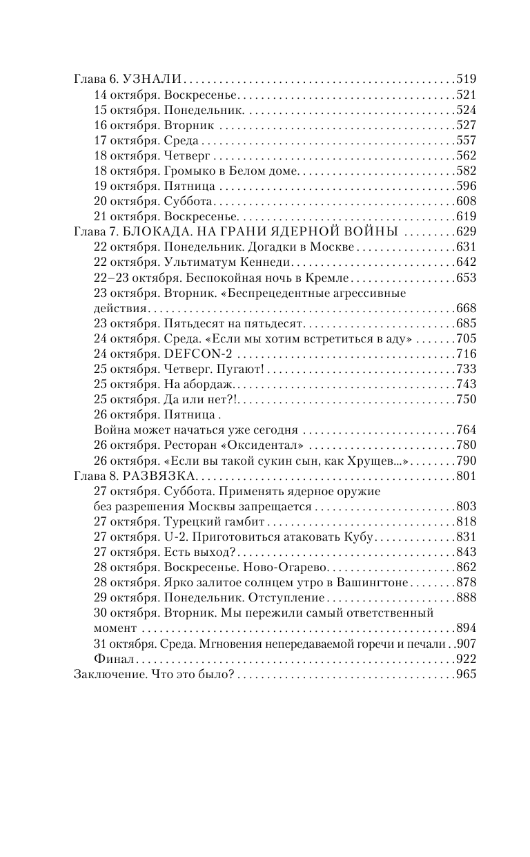 Осенью 1962 года Советский Союз и США тринадцать дней находились на волосок от ядерной войны. В этой книге минута за минутой, час за часом, день за днем проанализирован самый страшный по возможным последствиям дипломатический и военный кризис, который когда-либо угрожал человечеству.