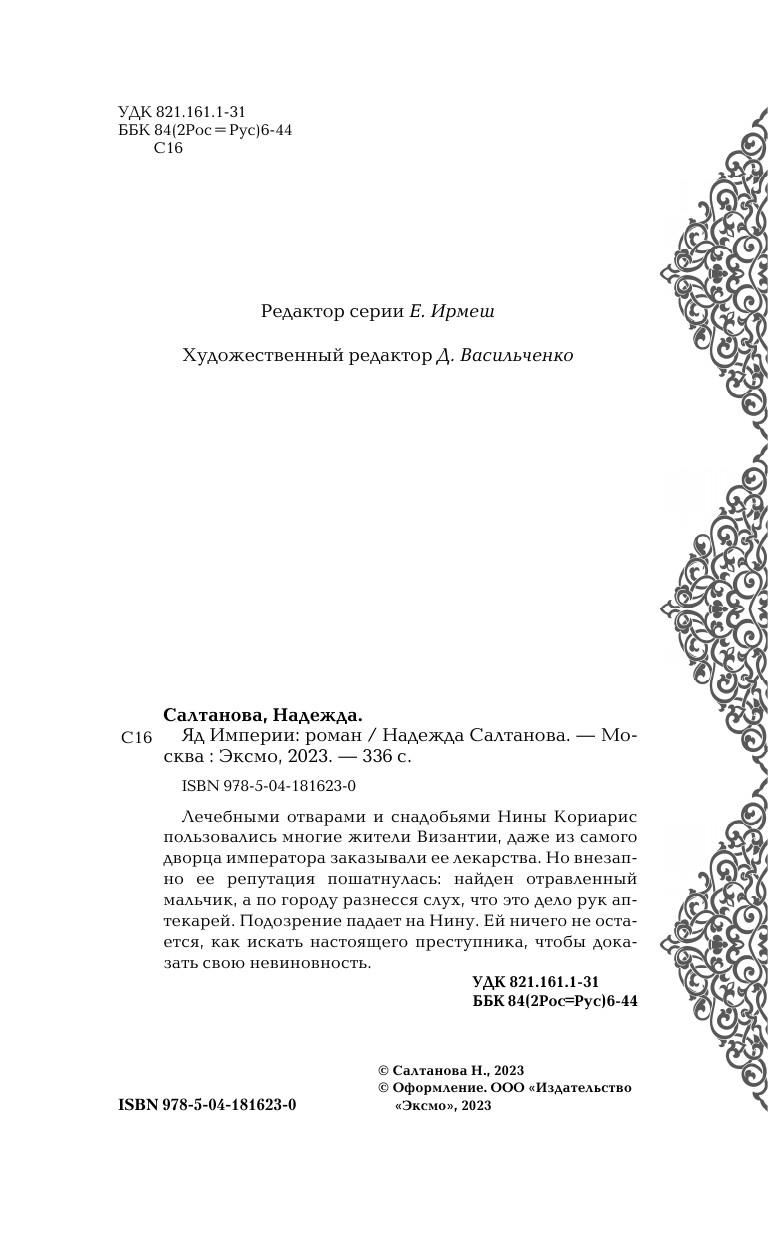 Книга: Яд Империи (Надежда Салтанова); Эксмо, Редакция 1, 2023