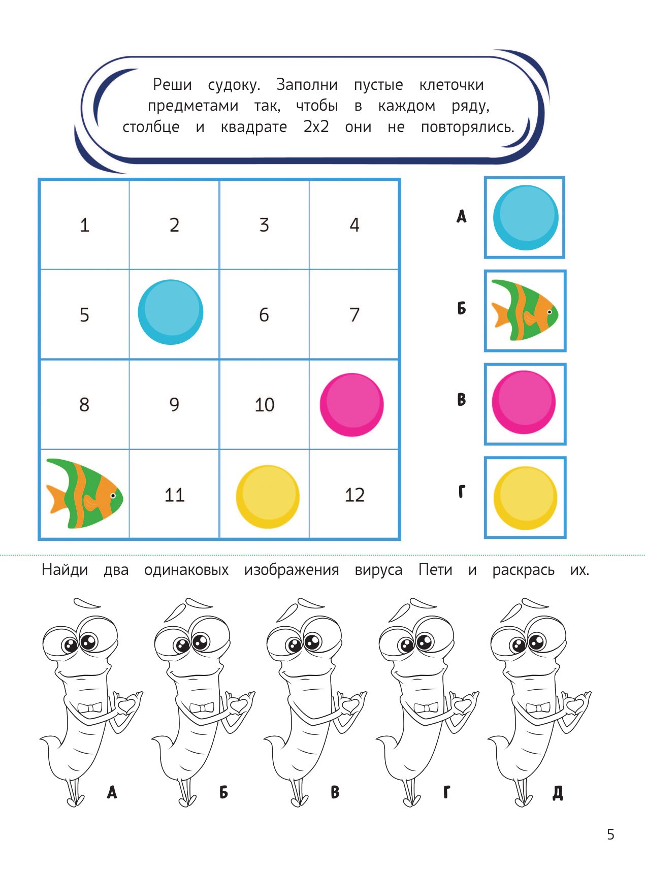 - Раскраски с играми и заданиями