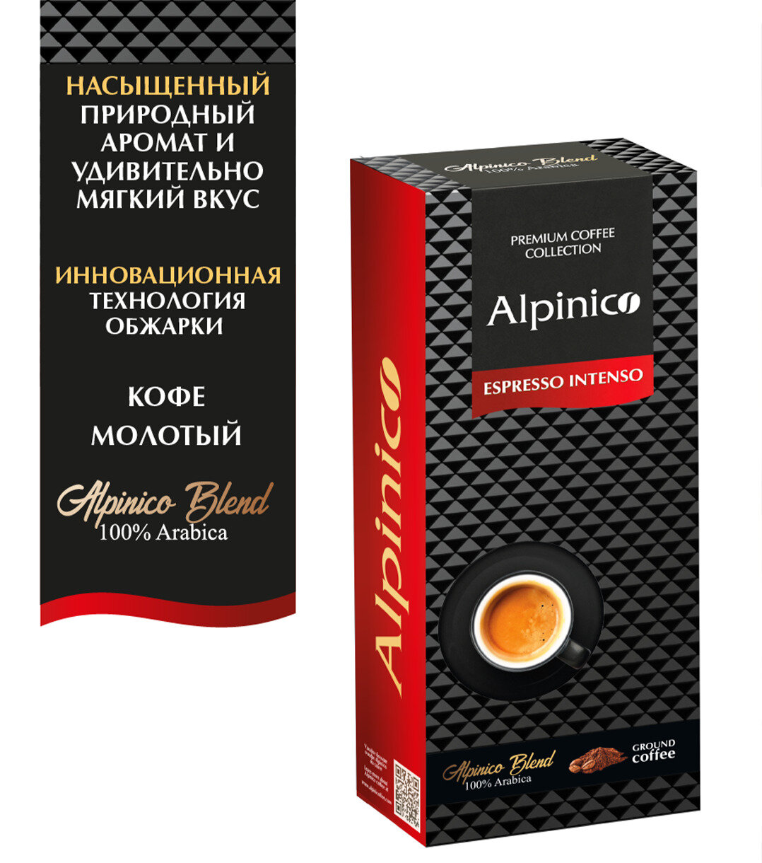 Кофe молотый Alpinico Espresso Intenso 100% Аpaбика 250г ООО Альпини